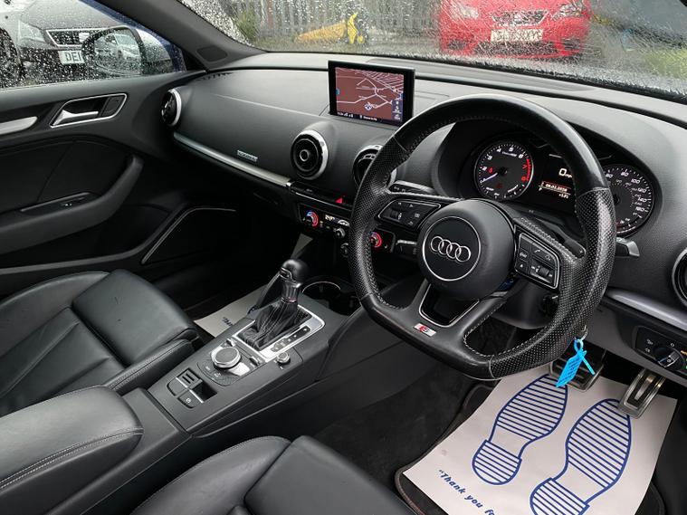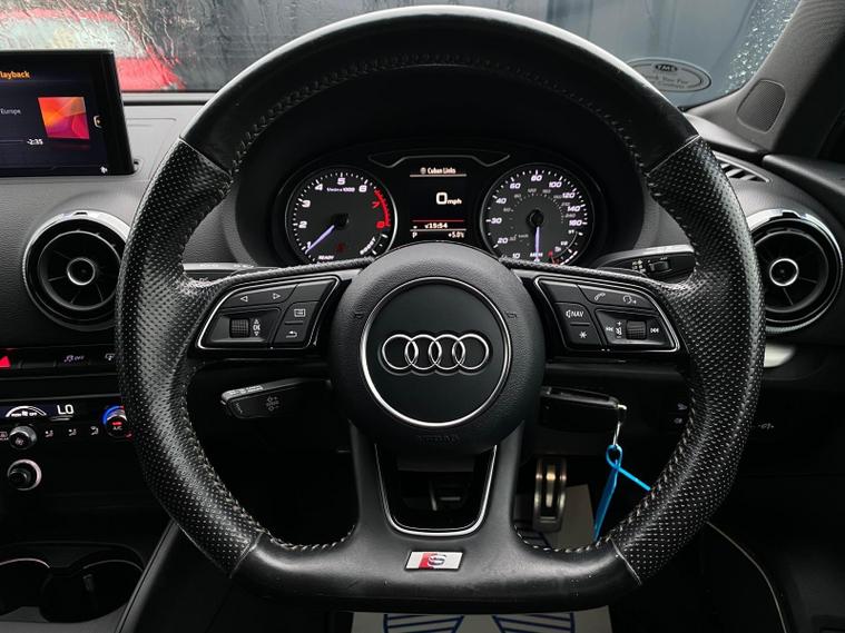 With a full dealership service history and a clear vehicle history check, this 2016 Audi S3 TFSI presents a compelling proposition for discerning drivers. Powered by a potent 2.0 litre petrol engine and featuring Audi's renowned four wheel drive system, this Euro 6 compliant model delivers exhilarating performance, achieving 0-62mph in a swift 4.6 seconds. Benefiting from only two previous owners and a comprehensive 24 month warranty, alongside 12 months MOT provided on purchase, this S3 offers peace of mind. Notable features include the advanced Audi Magnetic Ride for adaptive handling, a striking Matrix LED Exterior Lighting Pack, and a Driver Assistance Package incorporating Blind Spot Assistance and Adaptive Cruise Control.This Audi S3 stands out with its impressive acceleration, showcasing its sporting credentials. The inclusion of front and rear parking sensors, along with split folding rear seats, enhances practicality, while the large boot space ensures ample room for your luggage. Red brake calipers proudly displaying the S3 logo hint at the performance capabilities within. The last service was completed on 25th February 2025 at 89, 600 miles, further underscoring the meticulous care this vehicle has received, making it a superior choice compared to others in its class..