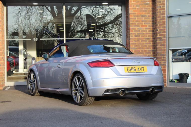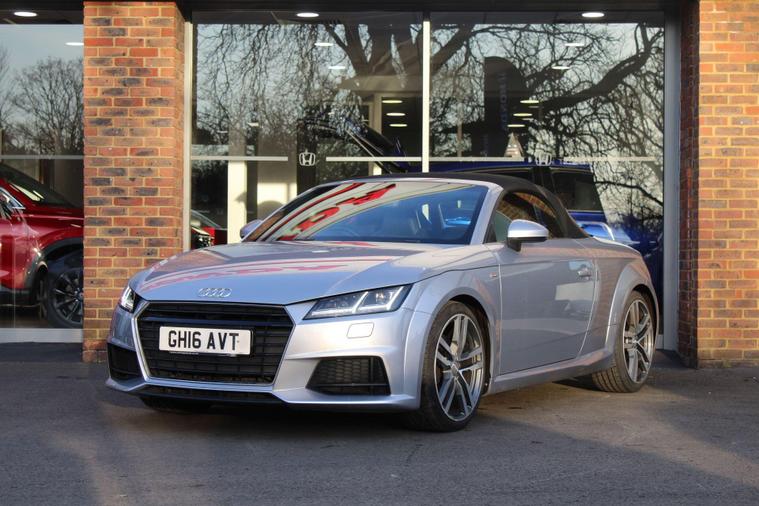 Stunning S-Line TT convertible with the sought after 2.0T petrol engine option, previously supplied by ourselves & benefitting from a comprehensive service history from new - last done with MOT 30th June 2025. It comes loaded with features including the Audi virtual dash, S-line embossed leather/alcantara seats, LED headlights, park assist & climate control to name a few. The book pack & spare key is also present, & the vehicle will undergo our usual Honda multi point inspection prior to sale.The 2016 Audi TT TFSI S line is a stylish cabriolet that combines performance with practicality. This TT, with its S line trim, boasts a sporty aesthetic and a responsive driving experience. Equipped with a 2.0L petrol engine and a range of features, this vehicle offers both comfort and convenience. The inclusion of automatic headlights ensures enhanced visibility, while Bluetooth connectivity allows for seamless mobile phone integration and audio streaming. Air conditioning maintains a comfortable cabin environment, and the all-weather LED headlights provide excellent illumination in various conditions.This TT stands out with its impressive fuel economy of 46 mpg, meaning fewer trips to the petrol station. The low CO2 emissions also mean you can drive with a clearer conscience. Acceleration from 0 to 60mph in just 6.0 seconds delivers an engaging and dynamic driving experience. The large boot space adds to the car's practicality, making it suitable for both daily commutes and longer journeys..
