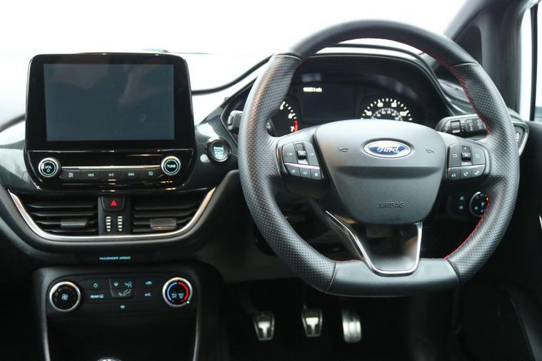 We only advertise a selection of our used cars on Autotrader. To view all our used cars currently in stock please visit our website https:/ dealer's website Be sure to check out our 360 Exterior and Interior Panorama view which is available for every vehicle.Boasting exceptionally low mileage for its age, this 2019 Ford Fiesta T ST Line presents a superb ownership proposition. With only one owner from new and a mere 10917 miles on the clock, this Euro 6 compliant 1.0 litre petrol model has been meticulously maintained, evidenced by its full service history, with the last service completed on 2025-11-13 at 10631 miles. Inside, you'll find comfort and connectivity with manual air conditioning and the Ford SYNC system, featuring a touchscreen, DAB radio, and seamless integration for Apple CarPlay and Android Auto. The NCAP Pack includes automatic headlights, enhancing both convenience and safety. This particular Ford Fiesta T ST Line stands out with its impressive fuel efficiency, making it an economical choice. Its performance is also noteworthy, achieving 0-62mph in just 10.6 seconds, demonstrating a responsive driving experience that surpasses many other vehicles in its class. These combined attributes of low usage, comprehensive servicing, and desirable features make this Fiesta a compelling option for anyone seeking a well cared for and capable compact car. Can't get to see it? Request a bespoke video, or we’ll come to you.All vehicles are thoroughly prepared for sale by our factory trained technicians. Up to 24 months RAC Platinum Warranty available for added peace of mind and financial security. 1 Year Warranty £349- or 2-Year warranty for just £449.00. Please ask for details. This car is offered by SG Petch York, a family business. We have several dealerships working with various Manufacturers. Why not put our reputation for quality and value to the test? Call to arrange a test drive. See our customer testimonials at dealer's website