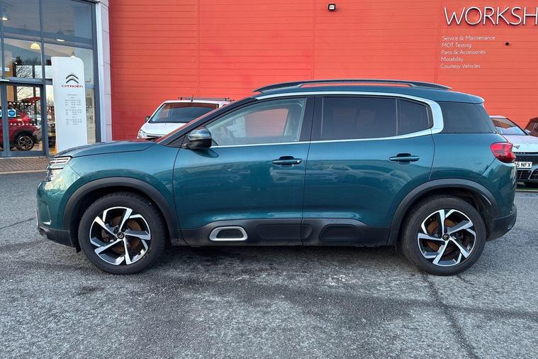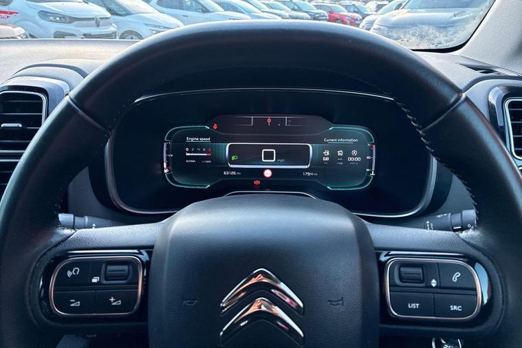 This 2020 Citroen C5 Aircross Flair is a Citroen manufacturer approved vehicle, offering peace of mind with a 12 month warranty and a full service history. This stylish SUV is equipped with a 1.2 litre Euro 6 petrol engine and boasts a generous boot space, making it practical for everyday use. The Flair trim level includes the convenient Park City Camera Pack, featuring front and rear parking sensors along with a reversing camera displayed on the central screen. Additionally, you'll find automatic dual zone climate control for optimal comfort and an active blind spot monitoring system for enhanced safety.The Citroen C5 Aircross Flair stands out with its impressive fuel economy, achieving up to 44 miles per gallon, which is better than many other vehicles in its class. Its low insurance group rating also indicates that running costs are kept to a minimum, further enhancing its appeal. These highlights demonstrate how this particular C5 Aircross offers excellent value and a superior ownership experience compared to similar models on the market..
