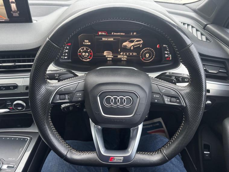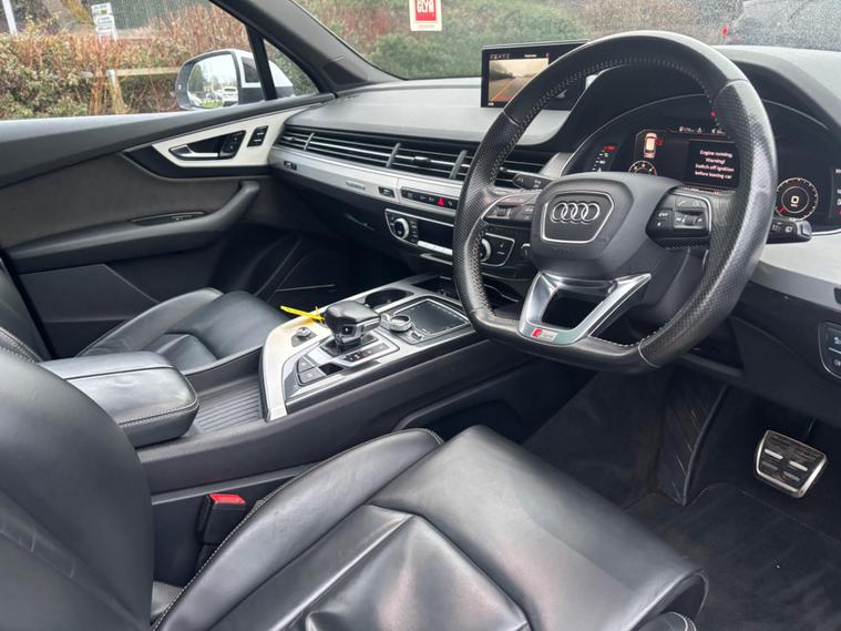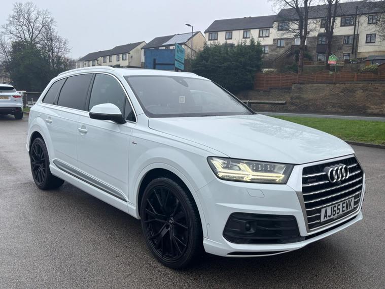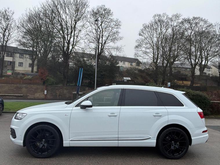 WE ARE PLEASED TO OFFER THIS HIGHLY DESIRABLE TOTALLY RARE AND UNIQUE HIGH SPECIFICATION HIGHLY MAINTAINED RARE LOW OWNERSHIP EURO SIX SEVEN SEATER AUDI Q7 3.0 TDI V6 S LINE TIPTRONIC QUATTRO FIVE DOOR + FINISHED IN THE BEST COLOUR OF GLACIER WHITE METALLIC PAINTWORK AND IS COMPLEMENTED WITH A FULL BLACK VALCONA LEATHER UPHOLSTERY + ONLY 91, 088 MILES HAS BEEN COVERED IN TOTAL BY TWO OWNERS + LAST FASTIDIOUS OWNER SINCE JULY 2020 AND IS BACKED WITH AN OUTSTANDING SERVICE HISTORY + JUST BEEN SERVICED + THE MOT IS TILL THE 5TH OF FEBRUARY 2027 + TRULY EXCEPTIONAL CONDITION THROUGHOUT AND DRIVES SUPERB + THIS TRULY STUNNING EXAMPLE COMES PACKED WITH A HOST OF EXPENSIVE AND RARE OPTIONAL EXTRAS WHICH INCLUDE A PANORAMIC GLASS / DIGITAL TV FUNCTION / 360'' CAMERA / PARK PACK ADVANCED / REAR VIEW CAMERA / SATELLITE NAVIGATION / TECHNOLOGY PACK / HEAD UP DISPLAY / BOSE SOUND SYSTEM / AUDI PHONE BOX / AUDI VIRTUAL COCKPIT / UPGRADED 22'' MULTI SPOKE ALLOY WHEELS / HEATED FRONT AND REAR SEATS / HEATED FRONT WINDSCREEN / FULL ELECTRIC PACK WITH POWER ADJUSTABLE FRONT SEATS / MEMORY PACKAGE FOR BOTH THE DRIVER AND PASSNGER SEATS / AMBIENT INTERIOR LIGHTING / AUDI MATRIX LED HEADLIGHTS / ADAPTIVE AIR SUSPENSION / ALL WHEEL STEERING / REAR ENTERTAINMENT PACKAGE / POWER TAILGATE / HEATED INSULATED GLASS ( DOUBLE GLAZED) / DAB TUNER / AUDI ASSIST / AUDI CONNECT SERVICES / 7 X FORWARD FACING SEATS / STOW N GO REAR SEATS / FRONT SPORT SEATS / CITY ASSISTANCE PACK WITH PARKING ASSISTANCE PACKAGE / ADAPTIVE CRUISE CONTROL / HIGH GLOSS STYLING PACK / KEYLESS GO SYSTEM / DYNAMIC HEADLIGHTS PLUS MUCH MORE + HANDBOOK PACK + DIGITAL PRINTOUT SERVICE HISTORY + 2 X KEYS + ANY TRIAL OR INSPECTION IS WELCOMED + HPI CLEAR WITH CERTIFICATE + SIX MONTHS NATIONWIDE WARRANTY IS INCLUDED + THIS TRULY CHERISHED EXAMPLE MUST BE VIEWED TO BE APPRECIATED AND MUST NOT BE CONFUSED WITH LESSER MAINTAINED LESSER SPECIFICATION VEHICLES AVAILABLE. We have been established in Baildon for over 20 years. All our vehicles are fully inspected, prepared and valeted. We are finance specialists..