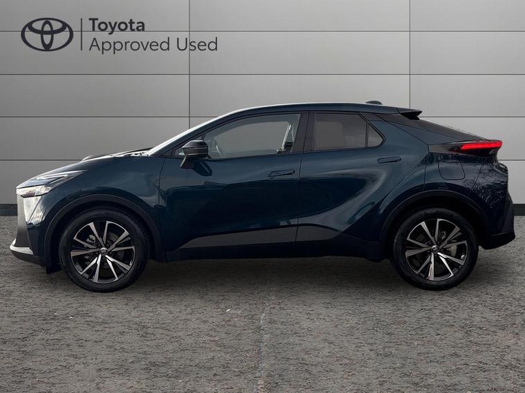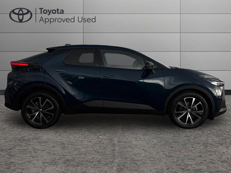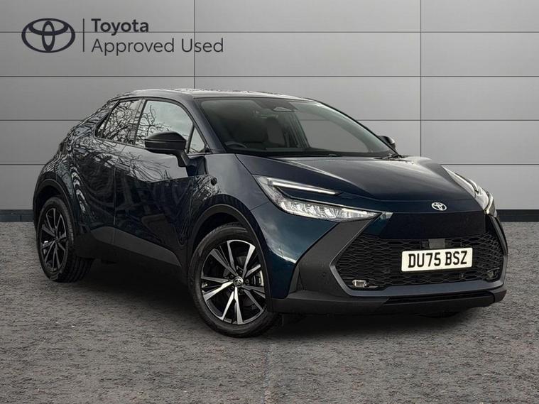 This 2025 Toyota C-HR VVT-h Design is a truly exceptional find, having been meticulously maintained by its single owner with a full service history, most recently serviced at just 10 miles on 02 October 2025. As a Toyota manufacturer approved vehicle, it comes with the reassurance of a 32 month warranty, and its MOT is valid until October 2028, offering peace of mind for years to come. This Euro 6 compliant 1.8L petrol hybrid is equipped with desirable features including Smart Entry and Push Button Start for effortless access, heated front seats for comfort in all weather, and a reversing camera to aid parking.Further enhancing your driving experience, this C-HR boasts Dual Zone Automatic Air Conditioning to keep everyone comfortable, and a Blind Spot Monitor system for added safety on the road. The C-HR Design stands out with its low CO2 emissions, contributing to a more environmentally conscious drive, and it also benefits from a low insurance group, making it an economical choice. These aspects, combined with its advanced technology and Toyota's renowned reliability, position this C-HR as a superior option compared to other vehicles in its class..