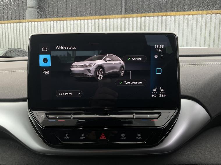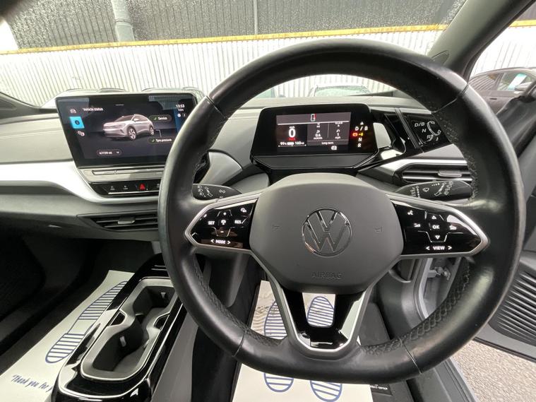 This 2023 Volkswagen ID.4 Pure Life is an excellent example of modern electric motoring. As an electric vehicle, it offers a smooth and quiet driving experience, powered by a 55 kWh battery that provides a maximum range of 213 miles when new. This model, in the Life trim, is designed for practicality and everyday use, featuring a generous boot space perfect for luggage, shopping, or sports equipment.Charging the ID.4 is convenient, with a full charge at home using a 7kW charger taking approximately 7 hours and 30 minutes, ideal for overnight top ups. For longer journeys, rapid public charging can replenish the battery from empty to 80% in as little as 38 minutes. These charging times and the impressive range demonstrate how this electric Volkswagen offers a compelling alternative to traditional petrol or diesel cars, making it a smart choice for those looking to embrace electric driving..