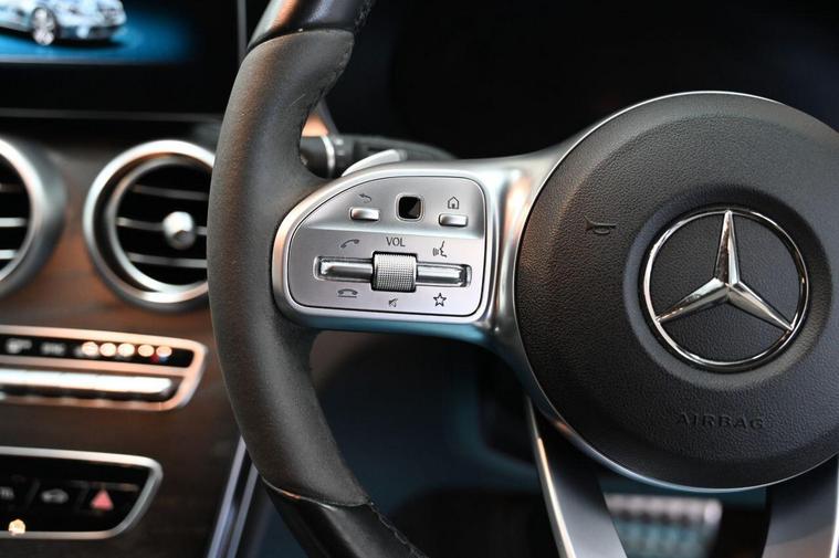 - Steering Wheel - 3-Spoke Multi-Function AMG in Black Nappa Leather with Flattened Bottom Section and Chrome Inserts and Perforated Leather in Grip Area