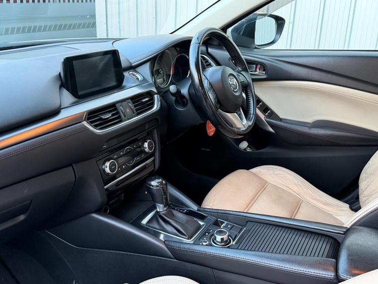 This 2016 Mazda6 SKYACTIV-D SE-L Nav is presented with a clear vehicle history check, offering peace of mind for its next owner. This attractive saloon features a powerful yet efficient 2.2 litre diesel engine, meeting Euro 6 emissions standards. Inside, you'll find dual zone climate control for personalised comfort, automatic dusk sensing headlights for convenience, and an integrated Bluetooth system for seamless connectivity. Parking is made easier with both front and rear parking sensors, and the SE-L Nav trim ensures you have all the essential features.The Mazda6 SKYACTIV-D SE-L Nav stands out with its exceptionally low insurance group, making it an economical choice for many drivers. Furthermore, its generous boot space provides ample room for luggage, shopping, or equipment, indicating its practicality compared to other vehicles in its class. This combination of efficiency, technology, and thoughtful design makes this Mazda6 a compelling option..