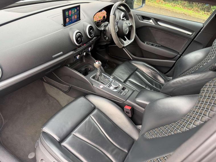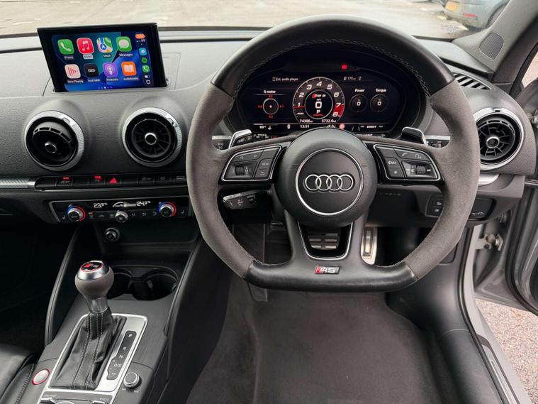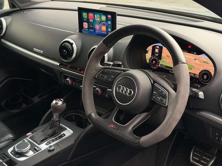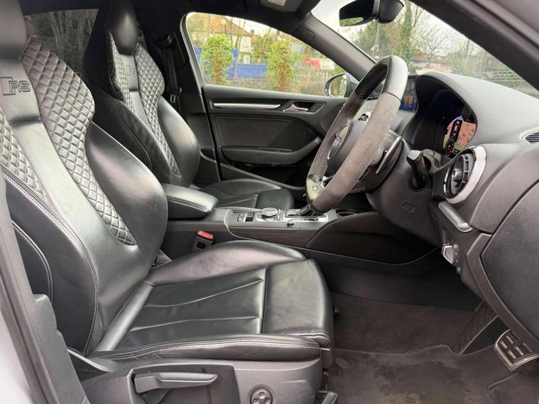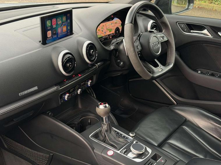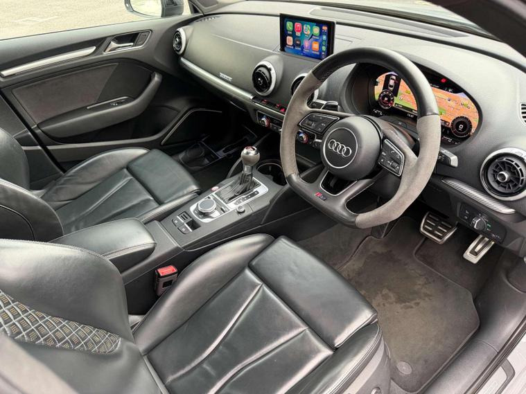 Powered by the legendary 2.5 TFSI 5-cylinder engine producing 400PS through Audi’s Quattro system, this car delivers relentless grip, characterful sound and everyday usability in one of the most complete performance hatchbacks ever made.Factory Specification Highlights:Audi Sport PackComfort & Sound PackageDriver Assistance PackageMatrix LED Headlights with Dynamic IndicatorsVirtual CockpitRear View CameraAudi Magnetic Ride with RS Sport Suspension19” 5-Arm Rotor Alloys – Gloss Black Diamond CutRS Sports Exhaust SystemFine Nappa Leather RS Super Sport Seats – Diamond Quilted4-Way Electric Lumbar SupportMatt Aluminium Styling PackageHeated, Folding, Auto-Dimming MirrorsPrivacy GlassRear Side AirbagsTyre Pressure Monitoring SystemRed Brake Calipers with RS LogoApple CarplayTasteful Upgrades:KW Lowering Springs – improves stance without compromising comfortGhost Immobiliser for added securityRetrofitted Ambient LightingThis car looks exactly how an RS3 should. Aggressive stance, premium interior, and the unmistakable 5-cylinder soundtrack enhanced by the RS exhaust.A very high specification example combining performance, comfort, technology and security, making it perfect as a daily driver or weekend weapon.A serious RS3 with the right colour, the right options and the right upgrades..