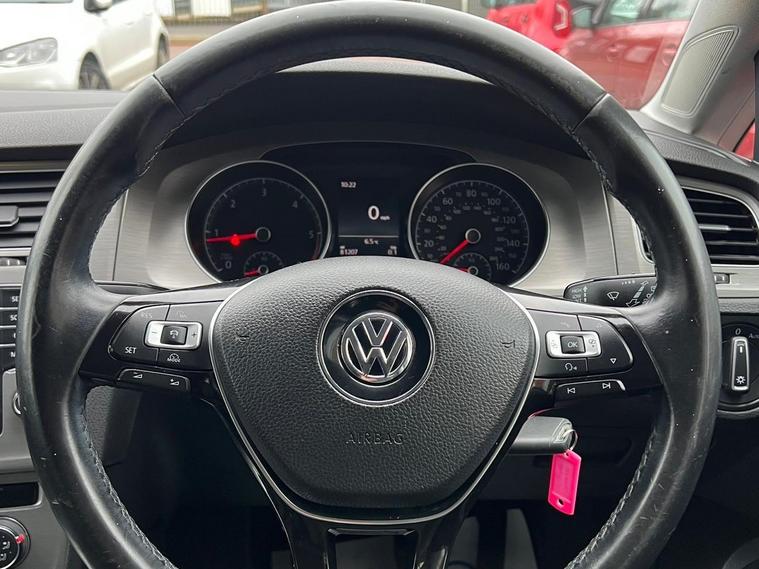 ***READY TO DRIVE AWAY***This 2014 Volkswagen Golf TDI SE presents a remarkable ownership history with only two previous owners and a low mileage of 81, 000 miles for its age. This popular hatchback is equipped with a 1.6 litre diesel engine and features manual air conditioning, Bluetooth telephone preparation for seamless connectivity, and adaptive distance control which includes adaptive cruise control for relaxed journeys. Additionally, it benefits from automatic dusk sensing headlights, ensuring your lights are always on when needed.The Golf TDI SE offers excellent value, boasting an impressive fuel economy of 74 miles per gallon, which is significantly better than many other vehicles in its class. Its low CO2 emissions also contribute to lower running costs and environmental impact. Practicality is a strong point, with generous boot space making it ideal for shopping trips or holidays. Furthermore, its placement in a low insurance group makes it an economical choice for many drivers..