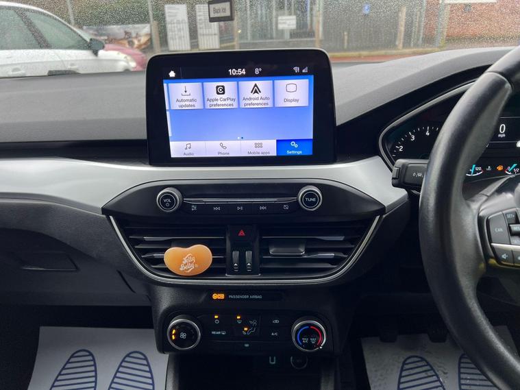 ***READY TO DRIVE AWAY***This 2019 Ford Focus Zetec boasts a full service history, with its last service completed on 14 February 2026, ensuring excellent provenance. This T Zetec model is powered by an efficient 1.0L Euro 6 petrol engine and comes with a 3 month warranty for your peace of mind. Its MOT is valid until February 2027, and it features automatic headlights and the Ford SYNC3 DAB Radio with a 6.5 inch touchscreen, complete with Android Auto and Apple CarPlay integration.You will appreciate the impressive fuel economy of 51 mpg, which, along with its low CO2 emissions, makes this Focus a more economical choice compared to similar vehicles. Furthermore, its low insurance group rating indicates that running costs are kept to a minimum. The generous boot space offers practicality for everyday needs and longer journeys, making this Ford Focus a well rounded and appealing option..