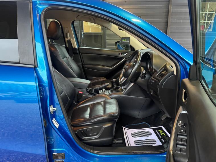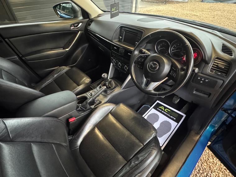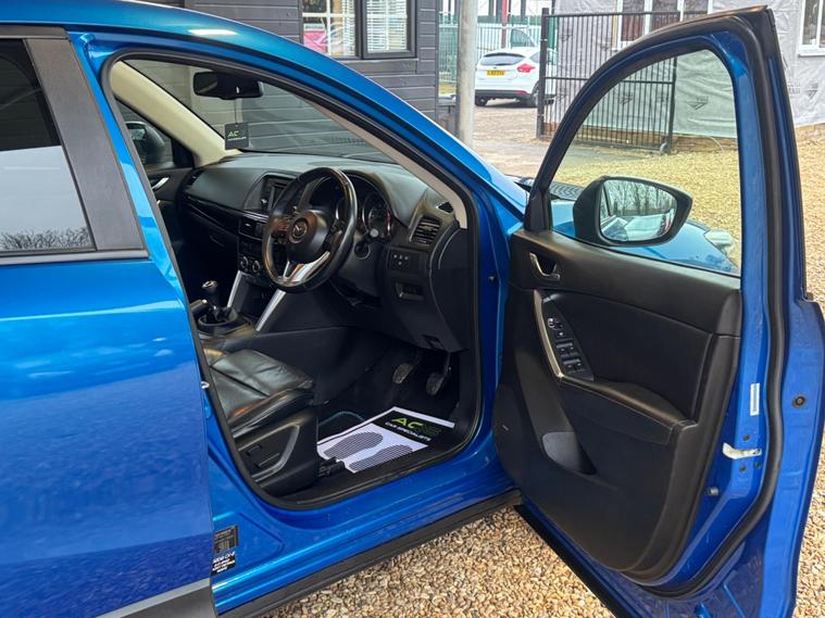 Here at AQS Car Specialist we take pride in being one of the few highly rated dealers for our customer service from Autotrader working closely together so we can go the extra mile to make sure you are getting the best service out there. All vehicles undergo a full visual and Mechanical health inspection, driven and tested. All essential work carried out with no expense spared. We offer an extended nation wide warranty with the option to extend up to 36 months, giving our customers full peace of mind and security when purchasing a car from AQS car specialists.Any inspection welcome, Test drive welcome, Part exchanges welcome. All dealer facilities available on site. Here at AQS Car Specialist we are delighted to offer this great looking example of a Mazda CX-5 2.0 SkyActiv-G Sport Nav. Finished in a lovely Blue with a contrasting full Black leather interior alongside 19 inch alloys. Recently serviced and comes with a fresh 12 months MOT. In great condition both inside and out, great example of how a CX-5 should drive. These CX-5s are known for their stylish design, comfortable cabin and smooth drive while still being low maintenance. This particular example benefits from being fitted with Dual Zone Climate Controlled Air Conditioning, Cruise Control, Sat Nav, Bluetooth Connectivity, USB Input, Auto Bi-Xenon Adaptive Headlights, Rain Sensing Wipers, Reverse Camera, Front and Rear Parking Sensors with Visual Guide, Electrically Adjustable and Heated Front Seats, Bose Surround Sound, MultiFunctional Steering Wheel, Stop/Start Function, Electrically Adjustable and Heated PowerFolding Side Mirrors, Tyre Pressure Monitoring System and the super useful Split Fold Rear Bench amongst all the usual Mazda refinements..