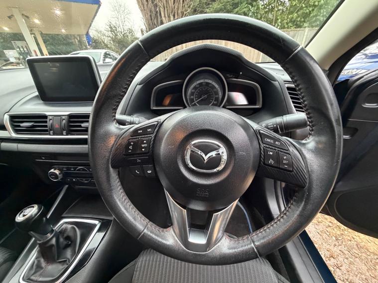 **Mazda Mazda3 2.0 SKYACTIV-G SE-L Fastback Euro 5 (s/s) 4dr*** **Registration:** AV16LDY* **Year:** 2016 (16)* **Mileage:** 83, 680 miles* **Fuel Type:** Petrol* **Transmission:** Manual* **Colour:** Blue* **Owners:** 2* **ULEZ:** Yes**Service History:** Partial service history**MOT:** Until February 2027**Warranty:** 3 months warranty included**Key Features:*** Bluetooth phone and audio streaming* Front heated seats* Dual zone climate control* Dusk-sensing automatic headlights* Bi-Xenon headlights**Economy & Running Costs:*** Up to 55 MPG fuel economy* Low CO₂ emissions* Low insurance group**For more available cars:**? dealer's website Text or call: 01223964083? CB24 9LQ**3 MONTHS AA WARRANTY AND 12 MONTHS AA BREAKDOWN COVER INCLUDED**.