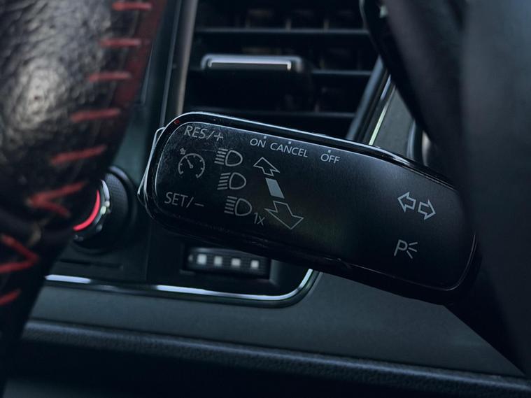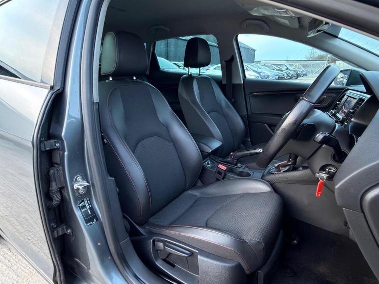 - Steering Wheel - Flat-Bottomed Perforated Leather with Red Stitching and FR Logo