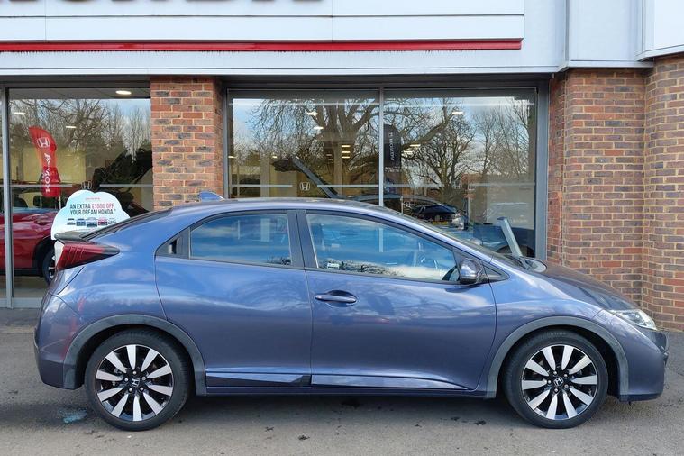 Discover this 2015 Honda Civic i VTEC SE Plus Navi, a car that stands out with its remarkably low mileage of just 50, 000 miles for its age. This Euro 6 compliant model is a Honda manufacturer approved vehicle, offering peace of mind. It features a responsive 1.8 litre petrol engine and comes equipped with a helpful rear parking camera, complete with parking assistance, making manoeuvring a breeze.This Civic SE Plus variant is not only practical with its large boot space, ideal for shopping trips or luggage, but also economical to run, being in a low insurance group. These factors combined indicate that this Honda Civic offers excellent value and a more cost effective ownership experience compared to many other vehicles in its class..