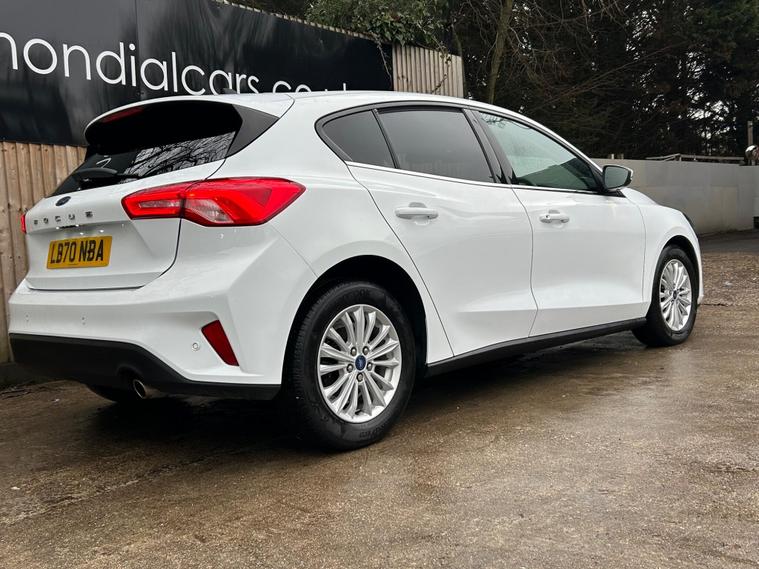 This 2021 Ford Focus T Titanium presents an exceptional opportunity with its remarkably low mileage of just 25, 000 miles. This Euro 6 compliant 1.0 litre petrol model offers a refined driving experience, enhanced by its Titanium trim. Inside, you'll find a host of desirable features designed for comfort and convenience, including rear privacy glass for added seclusion, and the advanced Ford SYNC3 DAB Navigation System which seamlessly integrates Android Auto, Apple CarPlay, and Bluetooth connectivity. Keyless entry provides effortless access, while the DEATC dual-zone electronic automatic temperature control ensures a pleasant cabin environment for all occupants.The comfort continues with both the driver and front passenger seats being heated, perfect for those colder mornings. This Focus also boasts a generous boot space, making it incredibly practical for shopping trips or weekend getaways. The combination of its low mileage, comprehensive feature set, and the spacious boot clearly sets this Ford Focus apart from other vehicles in its class, offering a superior blend of efficiency, technology, and everyday usability..