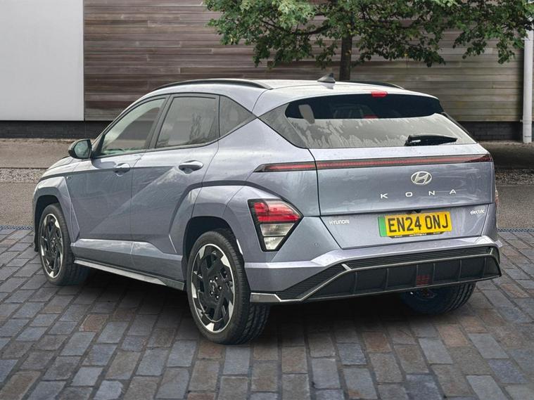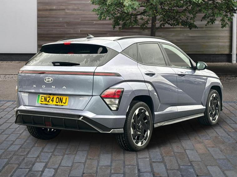 Hello and thank you for taking the time to view our vehicle listing – This is a Hyundai Kona 65.4kWh N Line SUV 5dr Electric Automatic, finished in the stunning Meta Blue with the distinctive N Line interior styling.This is the latest shape Kona Electric, powered by the larger 65.4kWh battery paired with the 218PS electric motor, delivering strong, instant acceleration and a smooth, refined driving experience. With a WLTP range of up to approximately 319 miles (model dependent), it offers excellent real-world usability for both daily commuting and longer journeys.Charging is simple and convenient — at home using a 7kW wallbox, a full charge can be achieved overnight, while rapid DC charging can take the battery from 10–80% in around 40 minutes, making longer trips effortless. Being fully electric, it offers zero tailpipe emissions along with significantly reduced running costs compared to petrol or diesel vehicles.Registered EN24 ONJ (24 Plate – 2024) and having covered just 13, 010 miles, this vehicle is presented in superb condition and represents a fantastic opportunity to own a nearly new, high-specification N Line model. This car has been owned from new by Hyundai UK.As the N Line specification, it benefits from sporty exterior styling, unique alloy wheels, N Line detailing, large touchscreen infotainment system with satellite navigation, digital driver display, Apple CarPlay & Android Auto, rear parking camera, parking sensors, adaptive cruise control, Lane Keep Assist, Blind Spot Collision Avoidance Assist, LED lighting, keyless entry with engine start button, climate control and much much more.The Hyundai Kona Electric continues to be one of the most desirable compact electric SUVs on the market, combining bold design, advanced technology and impressive electric range.This vehicle is in stock and ready to drive away – Call us today to request your bespoke video walkaround and to reserve this car on 01792692497. Finance packages are available and we will be happy to tailor a quotation to suit your requirements..