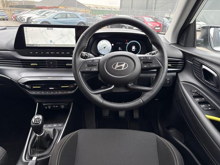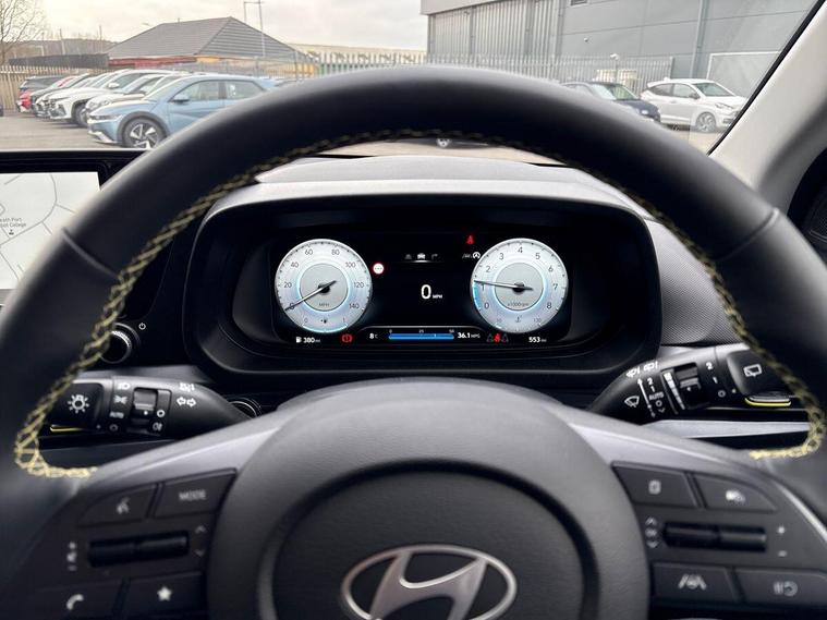 This 2025 Hyundai i20 T-GDi Ultimate is a Hyundai manufacturer approved vehicle, offering peace of mind. It features a responsive 1.0 litre petrol engine, meeting Euro 6 emission standards. This Ultimate trim level comes equipped with a suite of convenient features, including Android Auto and Apple CarPlay for seamless phone connectivity, a heated steering wheel for added comfort, and smart keyless entry with an engine start-stop button. You'll also appreciate the convenience of a wireless phone charging pad.The Hyundai i20 T-GDi Ultimate offers a compelling blend of performance and practicality. Its acceleration from 0 to 62 miles per hour in just 10.4 seconds demonstrates its agility. Furthermore, the generous boot space ensures you have ample room for luggage or shopping, making it a versatile choice for everyday use and longer journeys. These aspects highlight how this i20 stands out from other vehicles in its class..