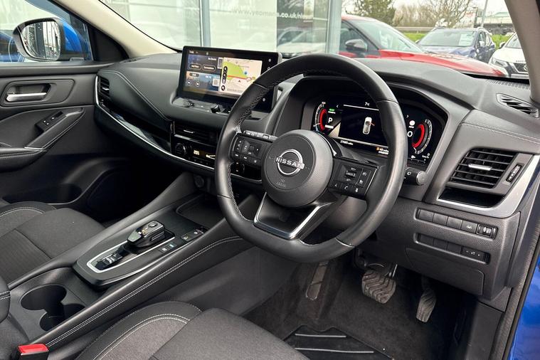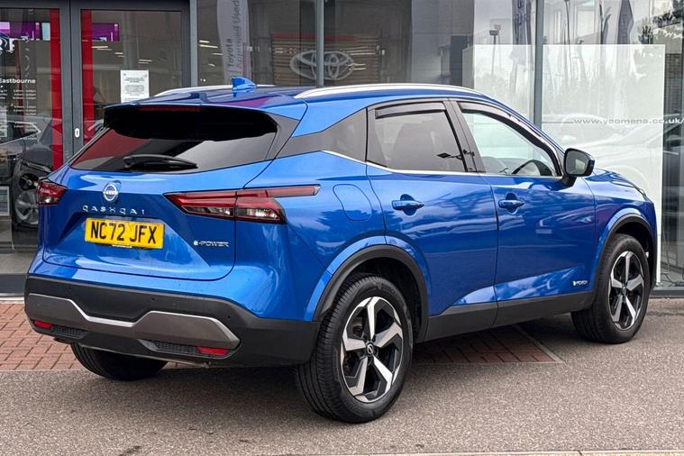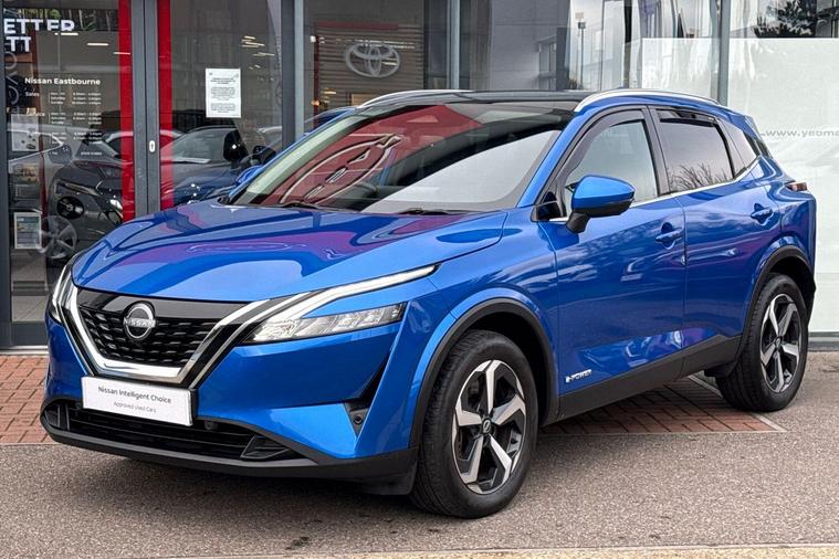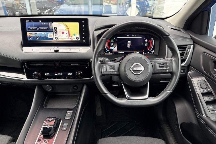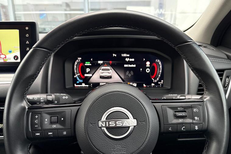 This 2022 Nissan Qashqai h e-POWER N-Connecta boasts a full dealership service history and remains Nissan manufacturer approved, offering peace of mind for its next owner. With only one previous owner and MOT valid until December 2026, this Euro 6 compliant vehicle is in excellent condition. It features a 1.5L Petrol Hybrid Engine and comes equipped with the desirable Glass Roof Pack, including a fixed panoramic sunroof, a rear view camera with parking assistance, wireless Apple CarPlay, Intelligent Around View Monitor for 360 degree parking assistance, and Intelligent Blind Spot Intervention.Experience impressive performance with a 0-62mph acceleration of just 7.9 seconds, while enjoying exceptional fuel economy of 54 mpg, highlighting its efficiency compared to other vehicles. This Qashqai also offers generous boot space for all your needs and benefits from low CO2 emissions, making it a more environmentally conscious choice. The last service was completed on 2025-09-03 at 24676 miles, further underscoring its well maintained status..