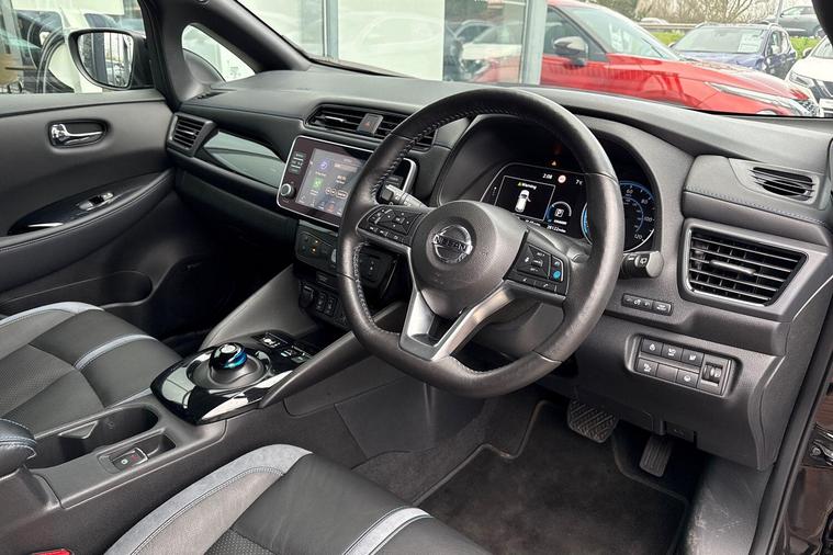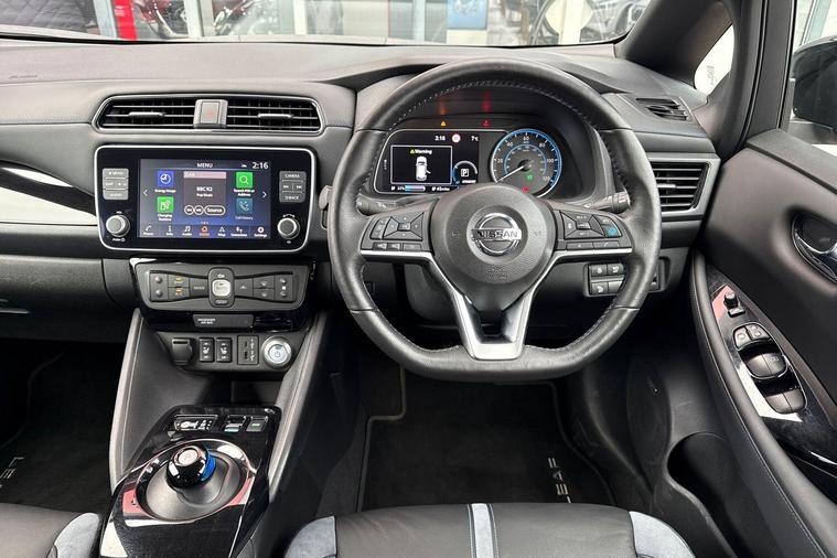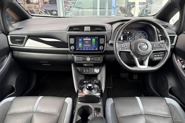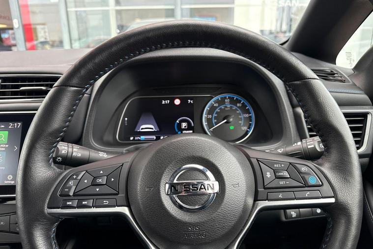 With only one owner and an MOT valid until November 2026, this 2021 Nissan Leaf e+ Tekna presents a compelling proposition for electric vehicle ownership. This Nissan manufacturer approved model boasts a substantial 62 kWh battery, offering a maximum range of 239 miles when new. Its provenance is further enhanced by a low mileage of just 28121 miles for its age. The e+ Tekna trim comes equipped with notable features designed for convenience and safety, including Blind Spot Warning with Blind Spot Intervention, Nissan i Key with Keyless Entry, and Intelligent Auto Headlights.Experience the impressive performance of this Nissan Leaf, with its electric powertrain delivering a swift 0-62mph acceleration in just 6.9 seconds, indicating a more responsive drive compared to many similar vehicles. Charging is flexible, taking approximately 11 hours and 30 minutes for a full charge at home using a 7kW charger, or a rapid 2 hours from empty to 80% on the fastest public chargers. You will also appreciate the generous boot space, making it practical for everyday use and longer journeys..