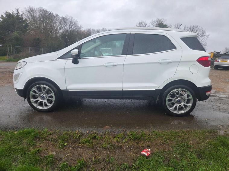 This 2020 Ford EcoSport T Titanium is presented with a clear vehicle history check, offering peace of mind for its next owner. Powered by an efficient 1.0 litre petrol engine and meeting Euro 6 emissions standards, this model combines practicality with modern technology. Inside, you'll find the Ford SYNC 3 Navigation system featuring an 8 inch touchscreen, complete with Android Auto and Apple CarPlay for seamless smartphone integration. Comfort is further enhanced by Electronic Automatic Temperature Control air conditioning, ensuring a pleasant cabin environment regardless of the weather.The EcoSport T Titanium also boasts a Rear View Camera Pack, which includes parking assistance with both a rear camera and rear sensors, making manoeuvring in tight spaces considerably easier. Automatic headlights are also included, providing added convenience and safety. With an impressive fuel economy of 48 mpg and low CO2 emissions, this Ford EcoSport demonstrates a commitment to efficiency that sets it apart from many other vehicles in its class..