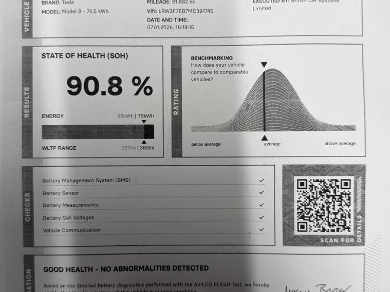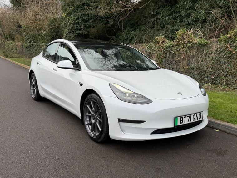 IMMACULATE INSIDE OUT ** FULLY VALETED ** JUST 1 OWNER FROM NEW ** VERY WELL MAINTAINED ** THE BATTER HEALTH IS EXCELLENT WITH STILL 90%PLUS, PLEASE SEE ATTACHED AN INDEPENDENT HEALTH CHECK CERTIFICATE ** THE MAIN BATTERY IS STILL UNDER MANUFACTURER WARRANTY **** LEATHER ** HEATED SEATS ** SAT NAV ** CAMERAS ** FOLDING MIRRORS ** SPARE KEY ** BOTH CHARGE CABLES AVAILABLE ** COMES WITH FREE 06 MONTHS WARRANTY ** FREE 12 MONTHS AA BREAKDOWN COVER ** This 2021 Tesla Model 3 Long Range has benefited from a single owner and a full service history up to February 2026, with its MOT valid until December 2026. As an electric vehicle with Four Wheel Drive, it offers an impressive battery total capacity of 78 kWh, providing a maximum range of 360 miles when new. This Model 3 also features Adaptive Cruise Control, 2 Zone Climate Control, 12 Way Power Adjustable Front and Rear Heated Seats, a Park Assist Camera, and Air Conditioning, ensuring a comfortable and convenient driving experience.The highlights of this Tesla Model 3 Long Range demonstrate its superior capabilities. Its electric powertrain delivers exhilarating acceleration, achieving 0-60mph in just 4.2 seconds, a performance that sets it apart from many other vehicles. Furthermore, the substantial boot space offers excellent practicality for everyday use and longer journeys. Charging is also convenient, with a full charge at home taking approximately 12 hours on a 7kW charger, and a rapid charge to 80% possible in as little as 26 minutes at a public charging station..