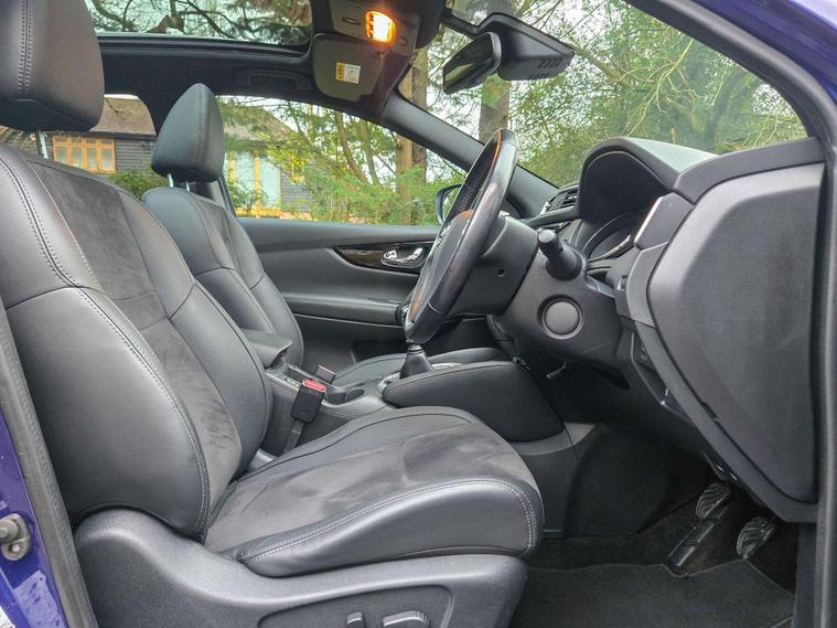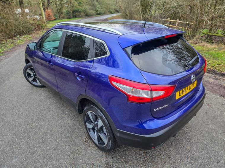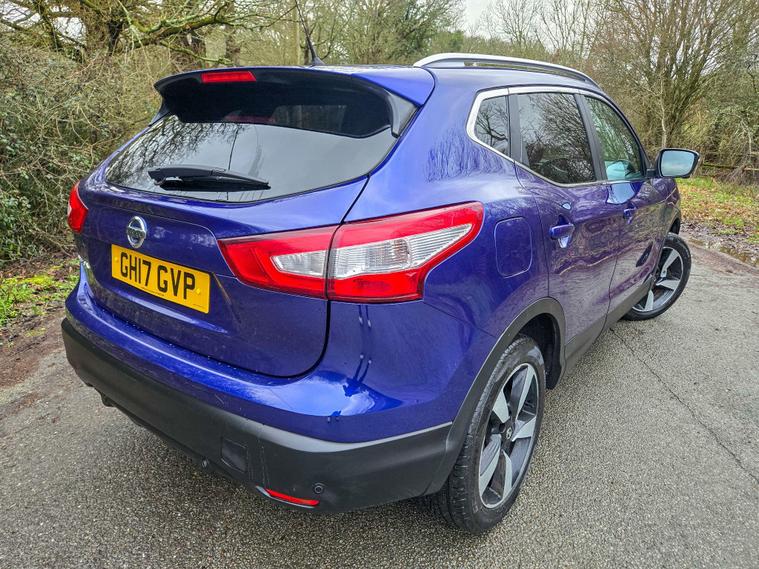 JUST SERVICED, NEW MOT, NEW TYRES, 2 KEYS, PANORAMIC GLASS ROOF, This 2017 Nissan Qashqai DIG-T N-Vision boasts a remarkable history with only two previous owners. This well maintained example comes with a 1.2 litre petrol engine and meets Euro 6 emissions standards. Inside, you'll find a host of desirable features including heated front seats for those colder mornings, a panoramic sunroof with a convenient one touch shade, and dual zone climate control air conditioning to ensure everyone's comfort. The N-Vision trim also benefits from a Tech Pack, which includes Bluetooth connectivity for seamless audio streaming and calls, as well as advanced parking assistance with a 360 degree camera system.This Qashqai offers excellent running costs, highlighted by an impressive fuel economy of 50 miles per gallon. Furthermore, its low CO2 emissions and placement in a low insurance group indicate that it is more economical to own and run compared to many other vehicles in its class. This combination of efficiency, comfort, and advanced technology makes the 2017 Nissan Qashqai DIG-T N-Vision a compelling choice..