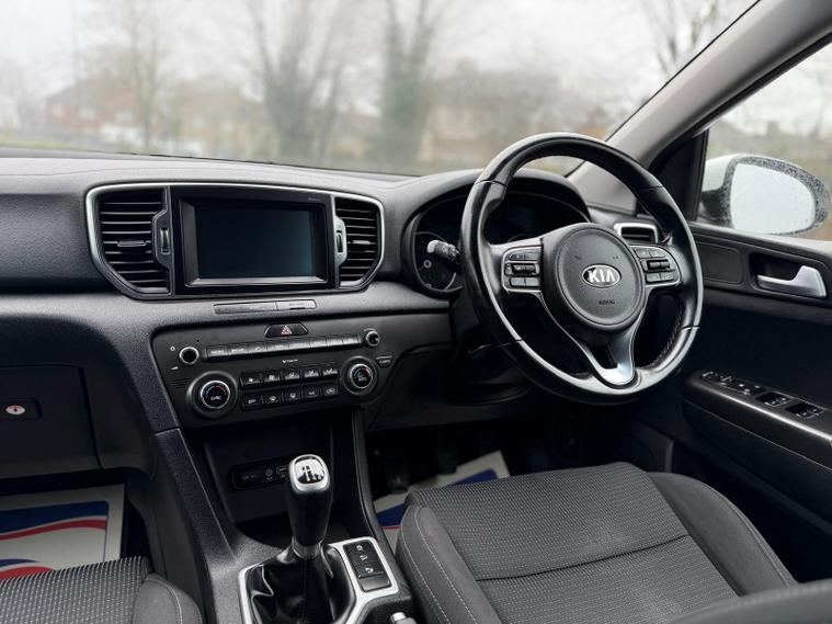 This 2017 Kia Sportage GDi 2 is presented with a clear vehicle history check, offering you peace of mind. Powered by a 1.6 litre Euro 6 compliant petrol engine, this model benefits from a straightforward ownership record. Inside, you'll find a range of convenient features designed to enhance your driving experience, including automatic headlight control, Bluetooth connectivity for music streaming, and rear parking sensors complemented by a reversing camera system. The dual automatic air conditioning with ioniser ensures a comfortable cabin environment for all occupants.The Sportage GDi 2 stands out with its generous boot space, making it a practical choice for families or those who need ample room for luggage or shopping. Furthermore, its position within a low insurance group indicates that running costs are likely to be more affordable compared to similar vehicles. These aspects, combined with its Euro 6 emissions rating, highlight how this Kia Sportage offers a well rounded and economical package..