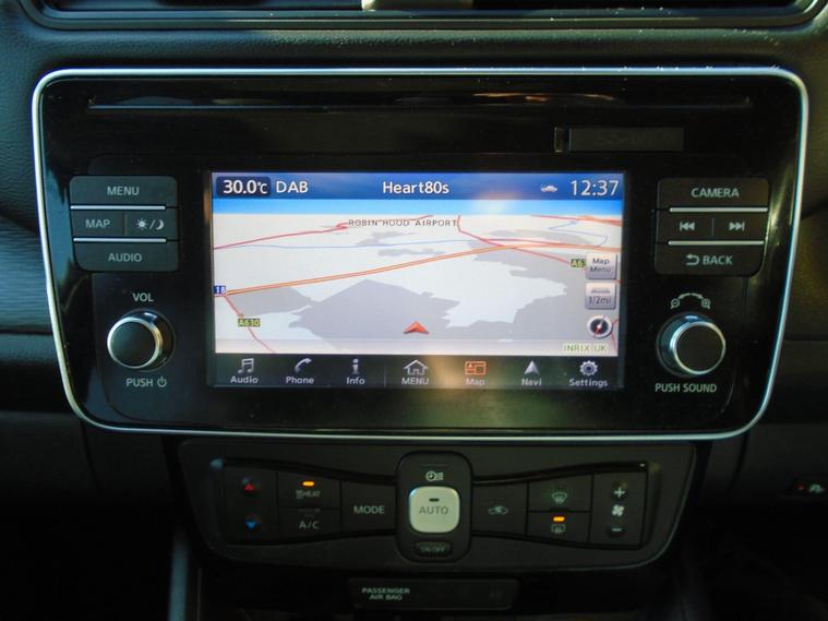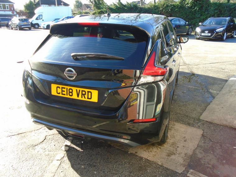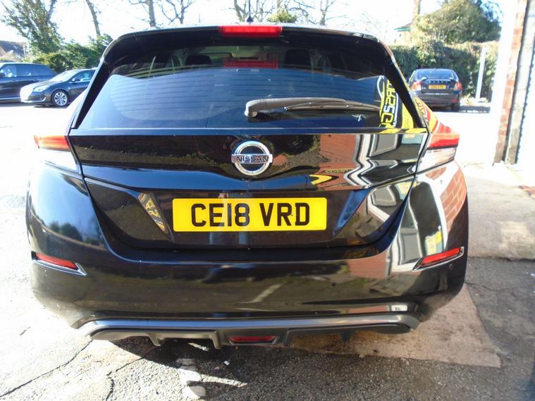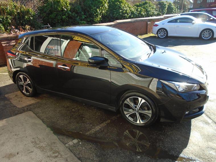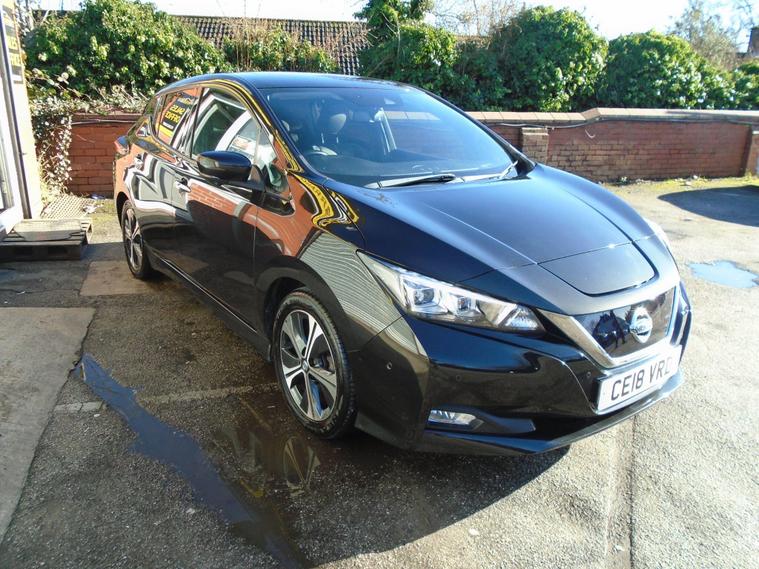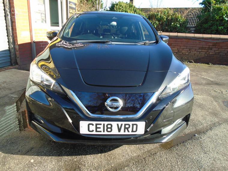 NISSAN LEAF 40kWh TEKNA AUTOMATIC 5 DOOR.METALLIC BLACK WITH FULL BLACK LEATHER.FANTASTIC SERVICE HISTORY ON THIS AUTOMATIC HATCHBACK ALL DONE AT NISSAN AND ALSO COMES WITH ALL CHARGING CABLES INCLUDING 240V.GREAT SPEC WITH SAT NAV, BLUETOOTH CONNECTIVITY, FRONT AND REAR PARKING SENSORS, 360 CAMERA, HEATED SEATS FRONT AND BACK, AIR CON, CRUISE CONTROL, USB+AUX 17 INCH ALLOY WHEELS WITH 2 KEYS.MOT UNTIL FEBRUARY 2027 AND FRESH SERVICE.12 MONTHS FREE AA BREAKDOWN COVER AND 18 MONTHS WARRANTY INCLUDED IN PRICE.FINANCE AVAILABLE P/X WELCOME..
