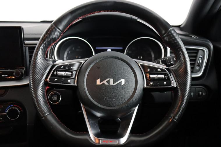 - Leather D-Cut Steering Wheel with Red Stitching