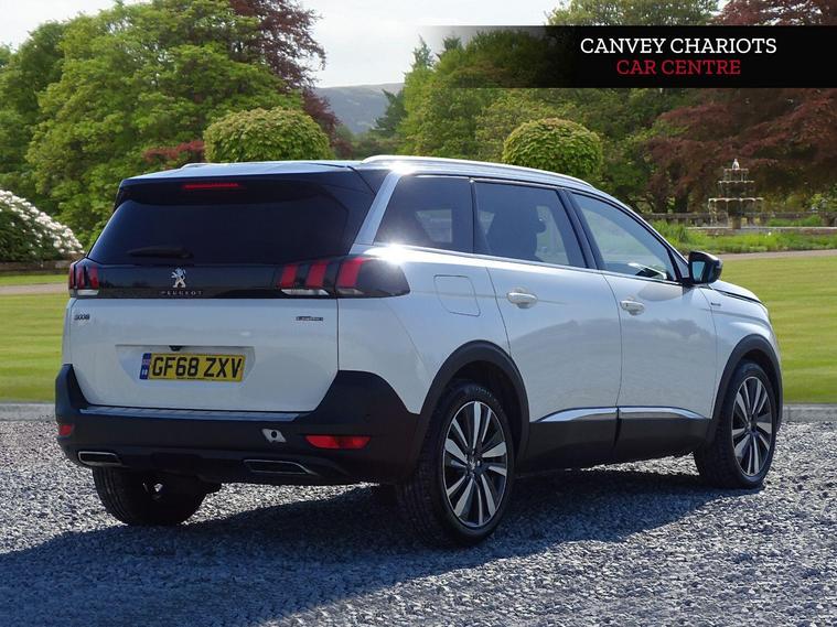 This 2018 Peugeot 5008 GT Line Premium is presented with a clear vehicle history check, offering peace of mind for its next owner. This versatile 7 seat SUV is powered by an efficient 1.2 litre Euro 6 petrol engine. It boasts a range of desirable features, including the Mirror Screen system with Android Auto and Apple CarPlay for seamless smartphone integration, and a Smart Electric Tailgate with keyless entry for effortless access to its generous boot space. The Visibility Pack ensures automatic headlights are activated when needed, while the Safety Plus Pack includes Blind Spot Assistance to enhance your awareness on the road.The GT Line Premium trim level also features a stunning Panoramic Opening Glass Roof, complete with an electric interior blind and soothing blue ambient lighting, creating an airy and pleasant cabin environment. This Peugeot 5008 stands out with its impressive fuel economy of 44 mpg, indicating its efficiency compared to similar vehicles. Furthermore, its low CO2 emissions and low insurance group rating make it an economical choice for everyday driving..