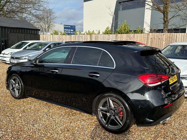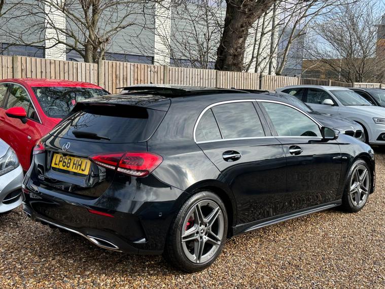 This 2018 Mercedes-Benz A Class A180 AMG Line (Premium Plus) boasts a clear vehicle history check and an MOT valid until November 2026, offering peace of mind. Powered by a 1.3L petrol engine and meeting Euro 6 emissions standards, this model comes with a 3 month warranty and partial service history. The AMG Line trim enhances its sporty appeal, while the Premium Plus Package adds significant luxury and convenience.Experience effortless driving with features like LED High Performance Headlamps, automatic headlamp activation, and parking assistance sensors for both front and rear. The THERMOTRONIC luxury automatic climate control ensures a comfortable cabin temperature, and the opening panoramic sunroof creates an airy feel. Inside, you'll find heated front seats with memory function, a dual Bluetooth interface with two USB Type C ports, and keyless entry. This A Class also offers generous boot space and impressive acceleration, reaching 0-62mph in just 9.2 seconds, demonstrating its strong performance compared to similar vehicles..