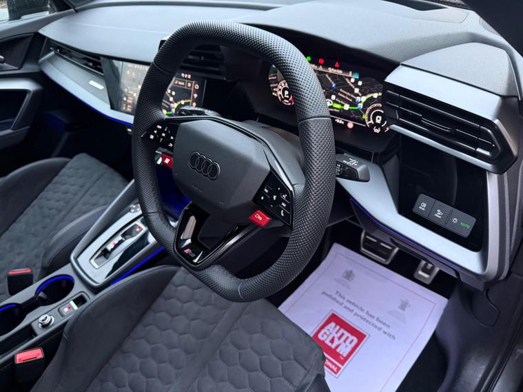 2025 25 AUDI RS3 CARBON BLACK 2.5 TFSI QUATTRO S-TRONICSPEC INCLUDES:* DAYTONA GREY METALLIC* NEW 2025 FACELIFT MODEL* AUDI VIRTUAL COCKPIT * 7 SPEED S-TRONIC AUTO GEARBOX WITH PADDLESHIFT * LARGE RED CALLIPERS WITH RS LOGO* TECHNOLOGY PACK PRO* HEADS UP DISPLAY* KEYLESS ENTRY* KEYLESS GO* AUDI DRIVE SELECT, COMFORT, ECO, INDIVUDUAL AND DYNAMIC DRIVING MODES * RS PERFORMANCE AND RS INDIVIDUAL DRIVING MODES* START / STOP TECHNOLOGY * 19'' AUDI TEN CROSS-SPOKE ALLOY WHEELS FINISHED IN SILK MATT GREY * EXCELLENT TYRES ALL ROUND* SONOS UPGRADED SOUND SYSTEM* AUDI PUDDLE LIGHTING* MATRIX LED HEADLIGHTS AND CORNERING LIGHTS * FULL BLACK ALCANTARA SUEDE / LEATHER SUPERSPORT BUCKET SEATS RS EMBOSSED WITH CONTRAST BLACK STITCHING * UPGRADE FLAT BOTTOM MULTI-FUNCTION LEATHER STEERING WHEEL WITH CONTRAST STITCHING* PIANO GLOSS BLACK INTERIOR AND DASH TRIM * THREE STAGE HEATED SEATS * TWO STAGE MEMORY SEATS* LED INTERIOR PACK * AUDI MULTIMEDIA * AUDI (HDD) MMI COLOUR SATELLITE NAVIGATION PLUS WITH HARD DRIVE * GOOGLE EARTH / MAPS * TMC (TRAFFIC MUSIC CHANNEL)* DAB DIGITAL RADIO * JUKEBOX WITH 20GB OF STORAGE FOR MUSIC * TWIN SD CARD SLOTS * BLUETOOTH FACTORY PHONE CONNECTION* BLUETOOTH MUSIC INTERFACE * FRONT AND REAR PARKING SENSORS WITH ON SCREEN ASSIST* REVERSE CAMERA* LED DAYTIME RUNNING LIGHTS* FOGLIGHTS* USB-C CONNECTION * ILLUMINATED RS3 LOGO ENTRY SILLS* TWIN CUP HOLDERS * AUTOMATIC LIGHTS* AUTOMATIC WIPERS * AUTO MAIN BEAM ASSIST* ESC TRACTION CONTROL * PRIVACY GLASS * LEATHER CENTRE ARMREST * CRUISE CONTROL * AIR CONDITIONING* DUAL DIGITAL CLIMATE CONTROL* ELECTRIC HEATED FOLDING MIRRORS* ELECTRIC HANDBRAKE* AUDI MAIN DEALER WARRANTY UNTIL 05/28STUNNING LOOKING RS3 WITH HIGH SPEC, EXCELLENT PERFORMANCE WITH QUATTRO HANDLING CAR IS IN EXCELLENT CONDITION INSIDE AND OUT, JUST BEEN VALETED, HPI CLEAR WITH GOLD REPORT, 5 DAYS FREE DRIVEAWAY INSURANCE...£57, 995PART EXCHANGE WELCOMEFINANCE AVAILABLE.