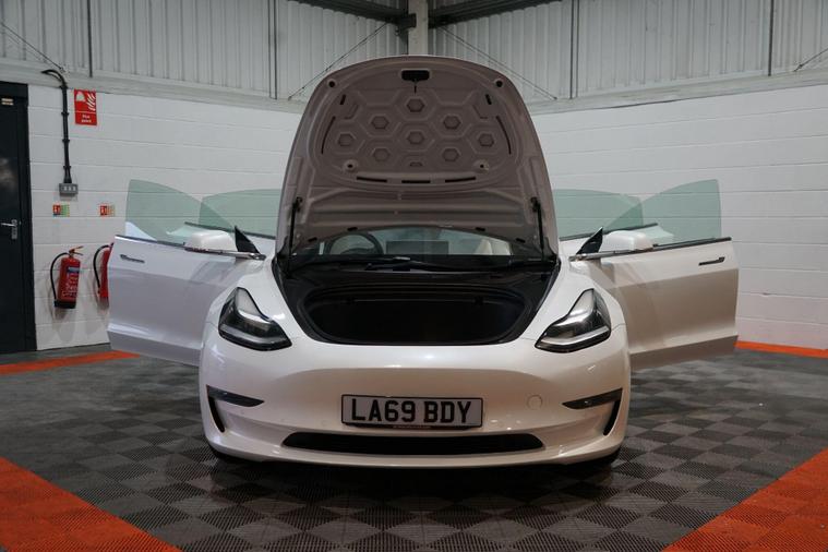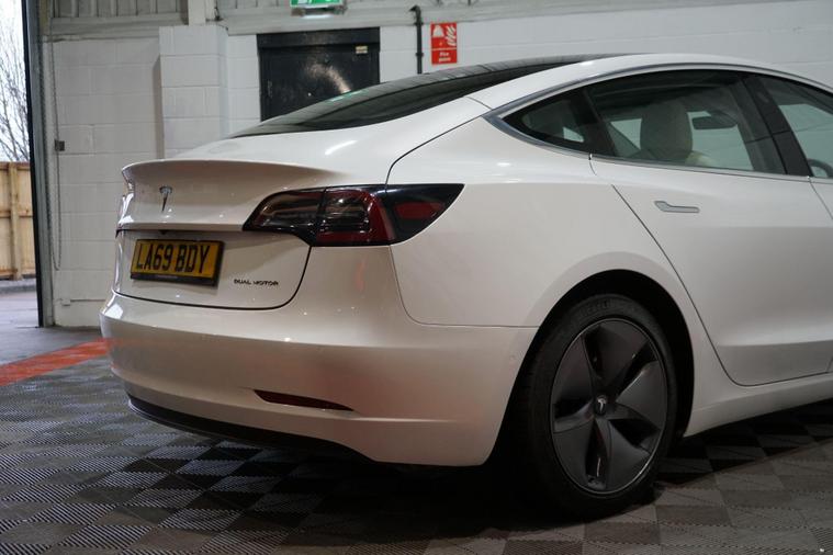 This Tesla Model 3 Long Range Dual Motor is a highly desirable all-wheel-drive electric saloon, offering strong performance, impressive long-range capability, and everyday usability. Finished with the rare Premium Engineered Material interior in Black and White, this specification is both visually striking and highly sought after, adding to the vehicle’s value and desirability.Powered by Tesla’s Dual Motor all-wheel-drive system and smooth automatic transmission, the Model 3 delivers rapid, seamless acceleration with excellent traction and stability in all conditions. The Long Range variant makes it perfectly suited to longer journeys as well as daily commuting, while remaining quiet, refined, and effortless to drive.This example is well presented and benefits from a clean, modern interior design focused on simplicity and technology.When new, this Model 3 was specified with the following features:Dual Motor All-Wheel Drive – Provides enhanced traction, stability, and confident performance in all weather conditionsLong Range Battery – Extends driving range, reducing charging stops on longer journeysPremium Engineered Material Interior (Black and White) – A very rare and desirable interior finish that elevates the cabin’s premium feelHeated Front and Rear Seats – Ensures comfort for all occupants throughout the yearReversing Camera – Makes parking and manoeuvring easier and saferCombining strong electric performance, long-range capability, and a rare interior specification, this Tesla Model 3 Long Range represents an excellent opportunity to own a highly desirable electric saloon.All part exchange welcome, with fair and instant valuations offered.If you are located further afield, we can provide a detailed walk-around video and arrange nationwide delivery at very competitive rates. Please get in touch with us for more information..