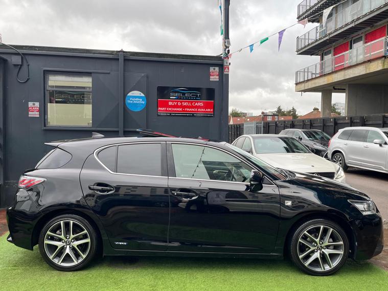 SELECT MOTORS (GB) IS DELIGHTED TO OFFER YOU THIS AMAZING LEXUS CT200H 5DR IN BLACK METALLIC COLOUR AND COMPLEMENTED WITH 17IN F-SPORTALLOY WHEELS. THIS VEHICLE HAS A HUGE SPECIFICATION WHICH INCLUDES THE FOLLOWING; PANORAMIC SUNROOF, SATELLITE NAVIGATION SYSTEM, REVERSING CAMERA FOR PARKING, POWER-ADJUSTABLE FRONT HEATED SEATS WITH A MEMORY FUNCTION, BLUETOOTH CONNECTIVITY FOR PHONE AND MEDIA, DAB-FM/AM RADIO, DUAL ZONE CLIMATE CONTROL AIR CONDITIONING SYSTEM, LANE DEPARTURE WARNING SYSTEM, CRUISE CONTROL WITH SPEED LIMITER, DRIVE MODE SELECT SYSTEM, HALOGEN HEADLIGHTS WITH AUTOMATIC HIGH BEAM AND LED DAYTIME RUNNING LIGHTS, TYRE PRESSURE WARNING SYSTEM. THIS VEHICLE IS ULEZ EXEMPT. WE ARE OFFERING NATIONWIDE DELIVERY ON ALL VEHICLE (PLEASE GET IN TOUCH DIRECTLY FOR DETAILS). WE CAN ALSO CONDUCT VIRTUAL VIEWINGS AND ACCOMMODATE ANY REQUESTS YOU MAY HAVE. ALL OUR ADVERTISED STOCK IS TEST-DRIVEN, INSPECTED BY OUR MECHANIC TO MAKE SURE OUR CUSTOMERS DRIVE AWAY WITH THE BEST QUALITY CARS. WE CAN PROVIDE A VIDEO WALK AROUND THIS VEHICLE UPON REQUEST., ALL OF OUR VEHICLES ARE SUPPLIED WITH A 3 MONTHS WARRANTY WITH EXTENDED OPTION. 12 MONTHS FREE AA BREAKDOWN COVER. FINANCE AVAILABLE..