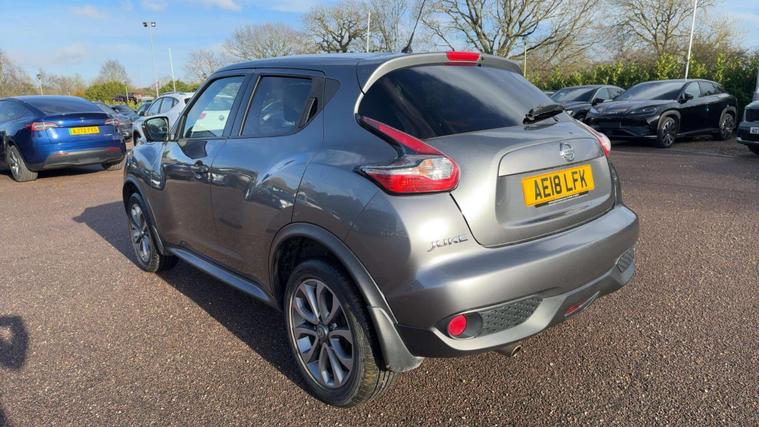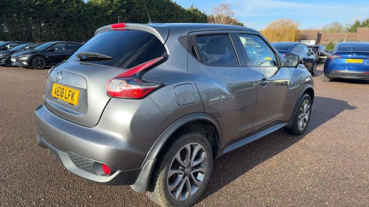 **Nissan Juke 1.6 Tekna XTRON Euro 6 5dr****Registration:** AE18LFK**Year:** 2018 (18)**Mileage:** 57, 400 miles**Fuel:** Petrol**Transmission:** Automatic**Colour:** Grey**Owners:** 3**ULEZ Compliant****Price:** £8, 995---**Step-by-step vehicle details:**• Full dealership service history• 57, 400 miles• 3 previous owners• Clear vehicle history check• Euro 6 compliant petrol engine• **3 MONTHS AA WARRANTY AND 12 MONTHS AA BREAKDOWN COVER****Features and equipment:**• 1.6 litre petrol engine• Automatic XTRON gearbox• Tekna top specification• Black leather upholstery• Black centre console• Black exterior pack• Automatic climate control with pollen filter• Bluetooth telephone connectivity• Colour reversing camera• 360° around view camera• Blind spot assistance• Parking assistance system• Safety PackA high specification automatic crossover with full dealership service history, premium interior, advanced safety features, and excellent fuel economy of up to 47 mpg. Ideal for city and family driving.**For more available cars:* dealer's website or call:** 01223964083**Postcode:** CB24 9LQ.
