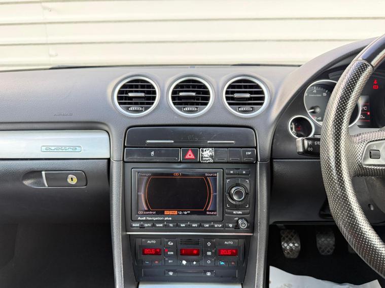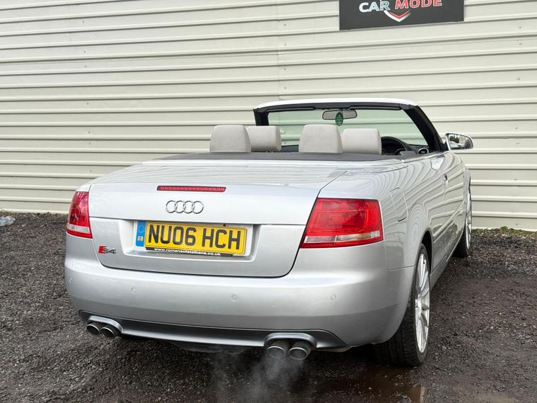 This 2006 Audi S4 Cabriolet boasts a clear vehicle history, offering peace of mind for its next owner. Under the bonnet lies a powerful 4.2 litre petrol engine, paired with Audi's renowned four wheel drive system for assured handling in all conditions. This S4 Cabriolet is also notable for its low insurance group, making it an accessible choice for performance motoring.Experience exhilarating performance with the S4 Cabriolet's impressive 0-60mph acceleration time of just 5.9 seconds, a figure that places it ahead of many comparable vehicles. This combination of potent engine power, all wheel drive capability, and swift acceleration ensures a dynamic and engaging driving experience, all within a stylish and well maintained convertible package..