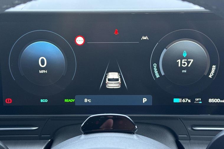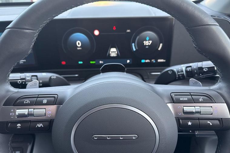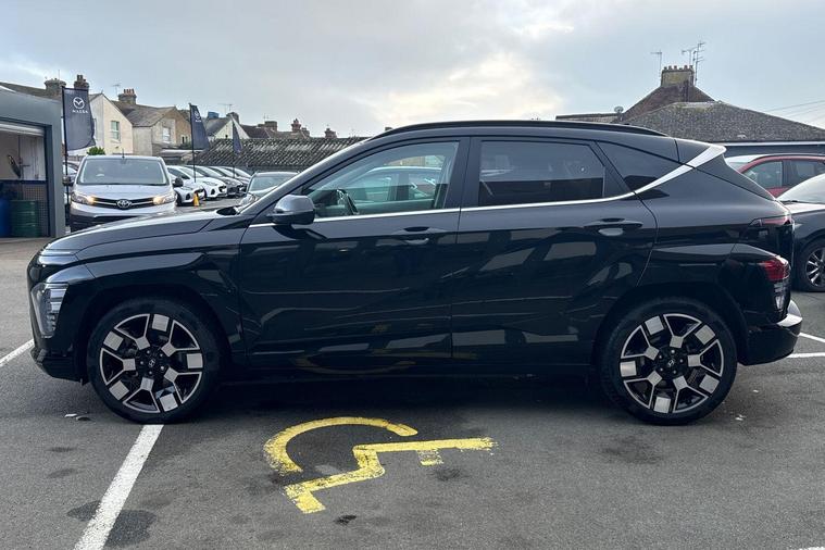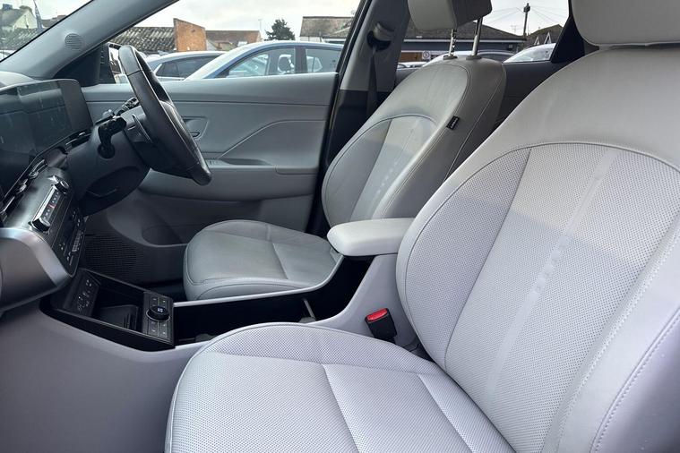 This 2025 Hyundai KONA Ultimate Electric boasts a single owner from new, offering excellent provenance. This striking electric SUV features a substantial 73 kWh battery, providing a maximum range of 282 miles when new. Charging is convenient, with a full charge at home using a 7kW charger taking approximately 8 hours and 53 minutes, while rapid public charging can take you from empty to 80% in just 46 minutes. The Ultimate trim comes equipped with the Lux Pack, including keyless entry and memory seats, alongside a sophisticated two tone grey and black leather interior. Further enhancing the driving experience are the smart key with start-stop button, full projection LED headlights for superior visibility, and front and rear parking sensors for confident manoeuvring.The Hyundai KONA Ultimate Electric stands out with its impressive electric capabilities and premium features. The generous battery capacity and extensive range mean you can travel further with fewer stops, making it an ideal choice for both daily commutes and longer journeys. The inclusion of advanced lighting and parking assistance systems highlights its superior design and user friendly technology compared to other vehicles in its class. This well appointed KONA offers a refined and efficient driving experience, combining practicality with advanced electric innovation..