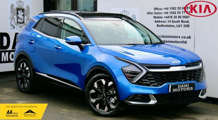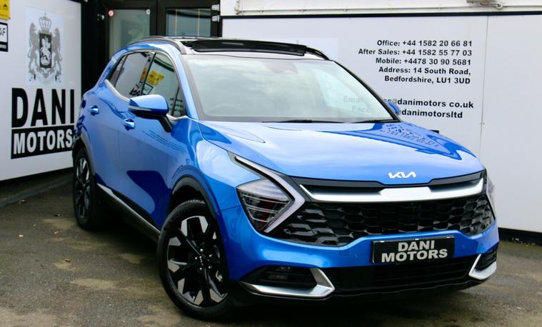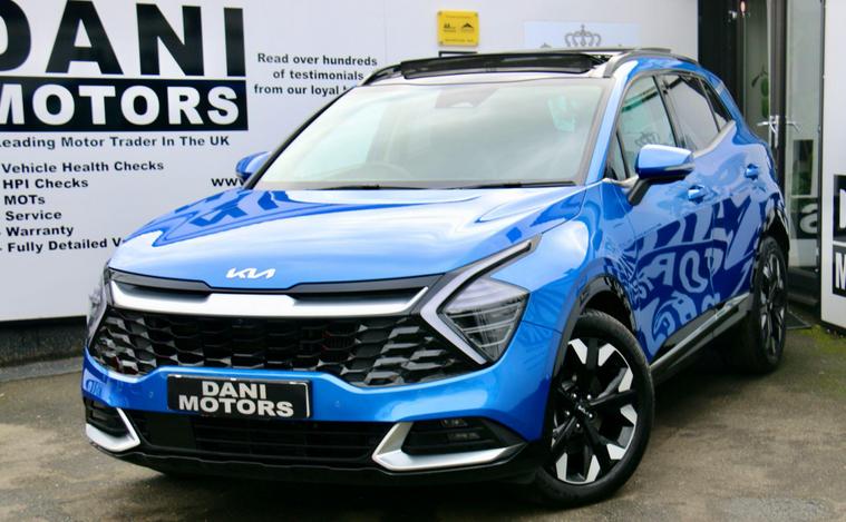 This MEGA SPEC absolutely stunning Kia Sportage finished in BLUE features an array of extras from factory include, Panroof, Harman Kardon Sound system, Electric folding mirrors, Lane departure, Adaptive cruise control, Apple carplay and Android auto prep, Heated steering wheel and Heated front seats, Wireless phone charger, Electric seats, Alloy Wheels, Navigation System, Bluetooth, DAB Radio and so much more. This vehicle is ULEZ Compliant. FREE 12 Months MOT provided upon request, We offer optional Ceramic Coating to all our vehicles which benefits for added paintwork protection and prolonged enhancement of the paintwork to your new car. You may see reflections of other surrounding objects. Full Dealer Facilities. HPI Clear, Service History, Only 1 Owner from New, Brilliant Value. All our cars undergo a comprehensive 150 point check together with a brake inspection. Mechanical Report and HPI Certificate provided (upon request). Here at Dani Motors, quality matters to us. Not just quality service but the high quality of our vehicles, and the standard at which they hit our forecourts. Our sole purpose is to deliver the highest quality cars possible, both mechanically and aesthetically. You can also reserve the car until you can come and take it for a test drive, so you do not miss out! Buy your next car from us, as we are a trusted used car dealership. We also provide finance from a few UK's leading lenders, an optional extra 5-day drive-away insurance, part exchange so you can get everything sorted in one place. Every car has passed a rigorous pre-sales inspection in our workshop, which are home to our technicians..