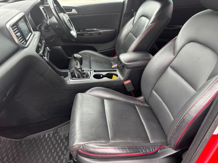 WE ARE PLEASED TO OFFER THIS HIGHLY DESIRABLE HIGH SPECIFICATION HIGHLY MAINTAINED RARE LOW MILEAGE ALL WHEEL DRIVE KIA SPORTAGE 2.0 CRDI EcoDynamics + GT LINE FIVE DOOR EURO SIX + FINISHED IN THE BEST COLOUR OF NEW INFRA RED METALLIC PAINTWORK AND IS COMPLEMENTED WITH A FULL BLACK LEATHER UPHOLSTERY WITH RED STITCHING + ONLY 49, 962 MILES HAS BEEN COVERED IN TOTAL AND IS BACKED WITH AN EXCELLENT SERVICE HISTORY WHICH IS COMPRISED OF FIVE SERVICES + THE SERVICES HAVE BEEN CARRIED OUT AT 11168 MILES, 20750 MILES, 28989 MILES, 36103 MILES AND 49962 MILES + THE MOT IS TILL THE 27TH OF JANUARY 2027 + OUTSTANDING CONDITION THROUGHOUT AND DRIVES SUPERB + 182 BHP MODEL + FULL GT LINE SPECIFICATION WHICH INCLUDES APPLE AND ANROID CAR PLAY / SATELLITE NAVIGATION / HEATED FRONT AND REAR SEATS / PARKING DISTANCE CONTROL WITH REAR VIEW CAMERA / 19'' B TYPE ALLOY WHEELS / PRIVACY GLASS / CRUISE CONTROL / MULTI FUNCTION LEATHER STEERING WHEEL / LED BI-FUNCTION HEADLIGHTS WITH ADAPTIVE FUNCTION / HILL HOLD ASSIST / BLUETOOTH HANDS FREE PHONE PACK / DAB TUNER / FULL ELECTRIC PACK WITH POWER FOLD DOOR MIRRORS AND POWER TAILGATE / KEYLESS START AND MUCH MORE + HANDBOOK PACK + STAMPED SERVICE BOOK WITH INVOICES AND RECEIPTS + 2 X KEYS + ANY TRIAL OR INSPECTION IS WELCOMED + HPI CLEAR WITH CERTIFICATE + SIX MONTHS NATIONWIDE WARRANTY IS INCLUDED + KIA BUILD QUALITY + VIEWING IS ESSENTIAL TO APPRECIATE THIS MUCH SOUGHT AFTER HIGH SPECIFICATION ALL WHEEL DRIVE SUV. We have been established in Baildon for over 20 years. All our vehicles are fully inspected, prepared and valeted. We are finance specialists. Part exchange is welcome. All major credit and debits accepted. Open 7 days. Our postcode is BD177EX..