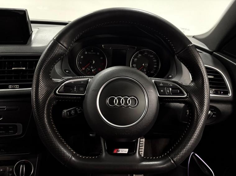 This 2018 Audi Q3 TFSI Black Edition finished in Daytona Grey with Black Half Leather is a superb example, having been cherished by just one owner since new. This stylish SUV boasts a powerful 2.0 litre petrol engine paired with Audi's renowned four wheel drive system, ensuring confident handling in all conditions. As a Euro 6 compliant vehicle, it meets modern emissions standards. The Black Edition trim enhances its already striking appearance, and you'll appreciate the convenience of LED headlights with dynamic rear indicators, a Bluetooth interface for seamless connectivity, and automatic headlights activated by the light and rain sensor. Parking is made effortless with the Audi Parking System Plus, featuring sensors at both the front and rear, while the impressive BOSE Surround Sound System promises an exceptional audio experience.The vehicle is supplied with 2 keys and has recorded service history at 18k, 35k, 53k and 70k. As part of our mechanical preparation the vehicle will receive a full inspection which will include a service and a new MOT.Experience the dynamic performance of this Q3, which accelerates from 0 to 62mph in a swift 7.6 seconds. This impressive acceleration, combined with its four wheel drive capability and the premium BOSE sound system, clearly sets this Audi Q3 apart from other vehicles in its class, offering a more engaging and refined driving experience..