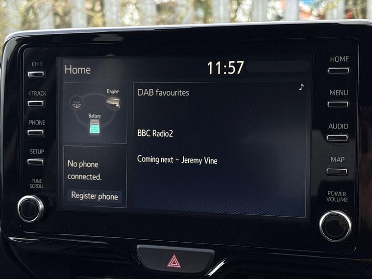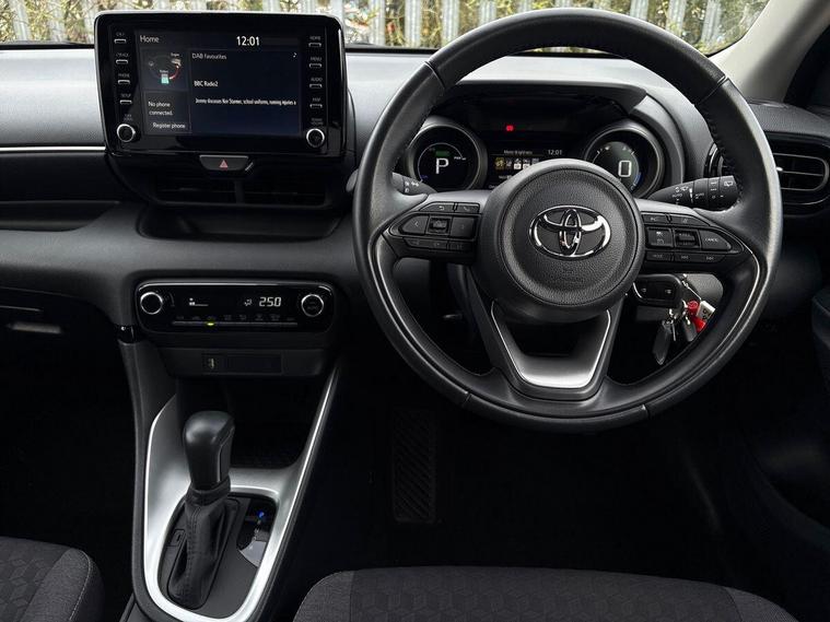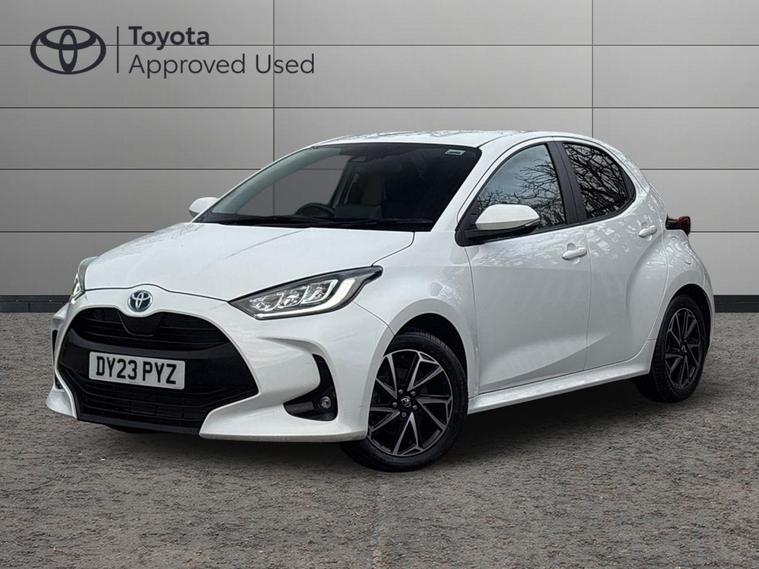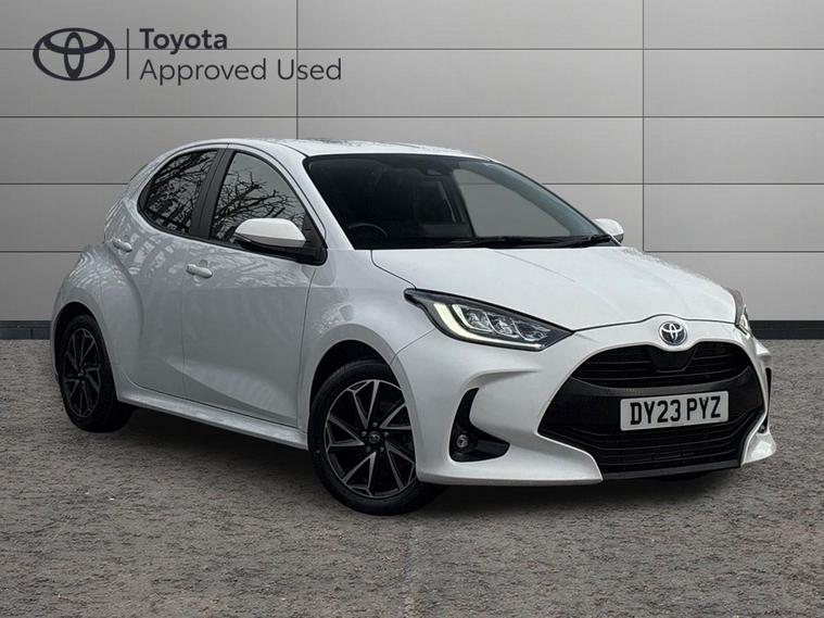 This 2023 Toyota Yaris VVT-h Design is a truly exceptional example, boasting a single owner and an incredibly low mileage of just 10, 800 miles, making it stand out from others of its age. This Euro 6 compliant, 1.5L petrol hybrid model comes with the reassurance of a 12 month warranty and MOT valid until April 2026. It benefits from a full service history, with the last service completed on 22nd April 2025 at 8, 211 miles, and is Toyota manufacturer approved, offering peace of mind for its next owner. Notable features include automatic air conditioning with climate control, a reversing camera with rear parking assistance, and adaptive cruise control, all part of the comprehensive Toyota Safety Sense 2 suite, complemented by LED headlights.Experience remarkable efficiency with this Yaris, achieving an outstanding fuel economy of 69 mpg, which is significantly better than many other vehicles in its class. Its low CO2 emissions also contribute to its appeal, making it an environmentally conscious choice. This well maintained, single owner vehicle offers a blend of advanced technology and economical driving, ensuring a comfortable and reassuring experience for every journey..