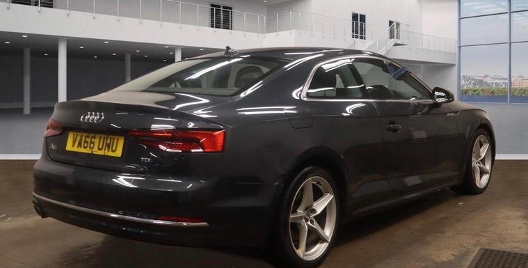 This Audi A5 TDI Sport from 2017 offers excellent provenance, having had only two owners. It features a 2.0 litre diesel engine and meets Euro 6 emissions standards. Inside, you'll find comfortable heated front seats, a deluxe 3 zone electronic climate control system, and a Bluetooth interface for seamless connectivity. The car is also equipped with Xenon headlights that include LED daytime running lights, and a light and rain sensor for automatic headlight activation.This particular A5 TDI Sport stands out with an impressive fuel economy of 71 miles per gallon, indicating it is more economical than many similar vehicles. It also benefits from a low insurance group, which can help reduce running costs. Furthermore, the generous boot space provides ample room for luggage or shopping, and its low CO2 emissions mean it is more environmentally friendly compared to other cars in its class..