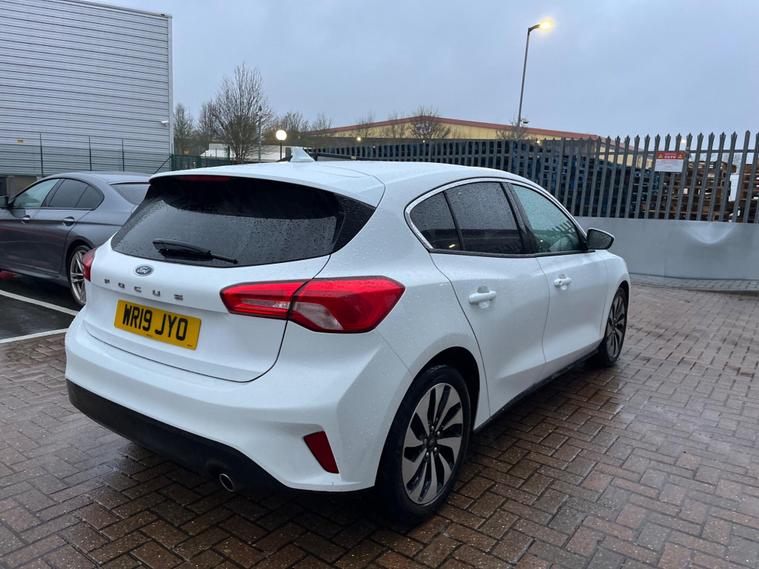 This 2019 Ford Focus Zetec T offers a refined driving experience with its efficient 1.0L Euro 6 petrol engine. This model features a distinctive Rotary Gear Shift Dial and paddle shifts for engaging control, complemented by the Ford SYNC3 DAB Radio. The system includes a floating 6.5 inch touchscreen with Android Auto and Apple CarPlay integration, ensuring seamless connectivity. Automatic headlights provide added convenience and safety, adapting to changing light conditions.The Ford Focus Zetec T stands out with its generous boot space, offering ample room for all your needs. The inclusion of features like the SYNC3 system with smartphone mirroring and automatic headlights demonstrates a thoughtful approach to driver convenience and entertainment, setting it apart from other vehicles in its class..