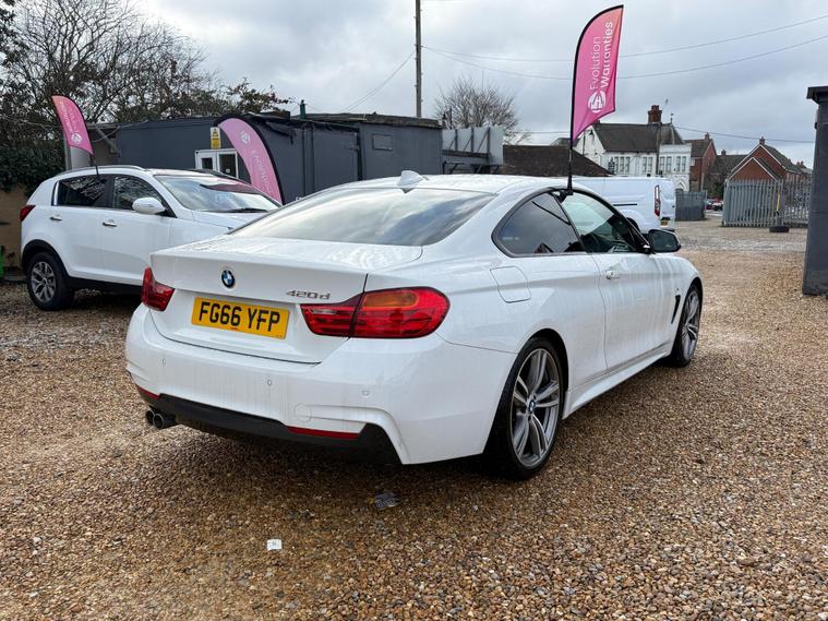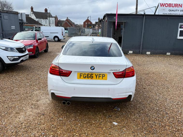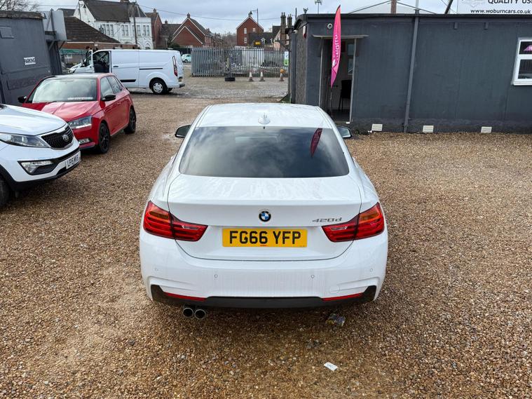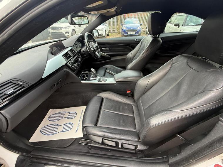 Are you looking to take your driving experience to the next level? Look no further than this Stunning BMW 4 Series! £35 Road Tax, 3 Former Keepers in Total, with the last lady owner enjoying the car since 2022, highlighting careful ownership.2017 BMW 420d M Sport 2.0 Diesel Automatic Coupe in Stunning White - service history, heated seats, sat/nav, 190 BHP, 66+ MPG, EURO 6 ULEZ compliant, High-spec M Sport coupe with full black leather with heated seats, touchscreen sat-Nav, keyless go, front & rear parking sensors and the efficient 2.0 diesel 190 BHP engine with smooth 8-speed auto box and paddle shift. Service history. The 4 Series coupe's sleek lines, refined cabin and strong effortless performance make it one of the best executive coupes - sporty yet comfortable every day. MOT valid until feb 2027 . Recently serviced at 101, 033 miles with front discs and pads replaced . This 2.0L diesel coupe delivers 190 PS with smooth performance and excellent economy. Finished in M Sport trim with sports suspension, alloy wheels, leather sports seats, climate control, cruise control, Bluetooth, parking sensors, electric windows and mirrors, and multifunction steering wheel. The car is in excellent condition, drives perfectly, and has a clean interior and exterior with no warning lights or known faults. Viewing and test drive welcome — ready to drive away..