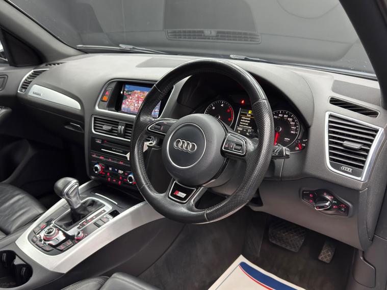 Here at Motor Gurus we are delighted to offer a Audi Q5 2.0 TDI S line Plus S Tronic quattro. This vehicle is in very good condition when taking into consideration the vehicle's age and mileage. This specific vehicle is finished in a METALLIC SILVER and is contrasted by a BLACK LEATHER interior. This vehicle comes included with: FRONT & REAR PARKING SENSORS, PRIVACY GLASS, ELECTRIC TAILGATE, HEATED SIDE MIRRORS, PERFORATED GRIPPED LEATHER STEERING WHEEL, CRUISE CONTROL, AUTOMATIC HEADLIGHTS, TWIN CUPHOLDERS, CLIMATE CONTROL, SAT NAVIGATION, DAB RADIO, BLUETOOTH AUDIO, TELEPHONE CONNECTIVITY, TYRE PRESSURE MONITORING AND MUCH MORE! Our Audi Q5 2.0 TDI S line Plus S Tronic quattro has come to us with 2 KEYS and will also come provided with a 12 MONTH MOT and a FRESH OIL SERVICE before it leaves our premises (OTR)..