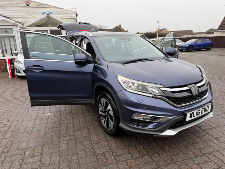 FULL SERVICE HISTORY, 6 MONTHS WARRANTY, MOT TILL 07/01/2027, Experian clear, just serviced, all prev MOT’s avail, we are located at 1-9 WALTON ROAD FRINTON ON SEA ESSEX CO13 0AA, PART EXCHANGE WELCOME, FINANCE AVAILABLE, This 2016 Honda CR-V i-DTEC EX boasts a full service history, with its last service completed on 10 February 2026, and an MOT valid until January 2027, offering excellent peace of mind. This Four Wheel Drive model is powered by an efficient 1.6 litre Euro 6 diesel engine, achieving an impressive 53 miles per gallon. The EX trim level includes desirable features such as dual zone climate control, automatic dusk sensing headlights, and heated front seats for enhanced comfort.Further enhancing your driving experience, this CR-V features a fixed panoramic glass roof, creating a bright and airy cabin. Rear parking sensors assist with manoeuvring, and the vehicle has a clear vehicle history check. You will also benefit from a 6 month warranty for added security. The generous boot space provides ample room for luggage or shopping, making this Honda CR-V a practical and well maintained choice that stands out from other similar vehicles..