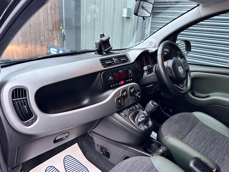 FIAT Panda 0.9 TwinAir 4x4 4WD 5dr Euro 6 ULEZ FREE. Finished in Darkwave Black with contrasting Grey Fabric/ Green 'Eco Leather'.15'' alloy wheels, Winter Pack, privacy glass, DAB radio, Bluetooth, electrically adjustable heated door mirrors, electric front windows, multifunction steering wheels, air conditioning, 5 seats, heated front seats, heated front windscreen, heated rear screen, central door locking, 4WD, electronic locking rear differential.Here at Saracen Motor Group we have been awarded AA Platinum dealership recognition along with being nominated for best customer service by Autotrader for 2021, 2022, 2023, 2024 & 2025. We are a 5-star dealership with over 600 5-star reviews across all internet platforms including Autotrader and have been regarded as one of the best dealerships to buy from in the UK.Our preparation team inspects each vehicle to the highest level possible for its age and mileage. You can rest assured your next car has been cared for to the highest standard. Service history, V5 and the HPI certificate will all be present on viewing and collection. With our location based in Battlesbridge, Essex you can enjoy a haggle-free buying experience where you can drive away the same day if prior arranged, additional fees apply please see our website for details..