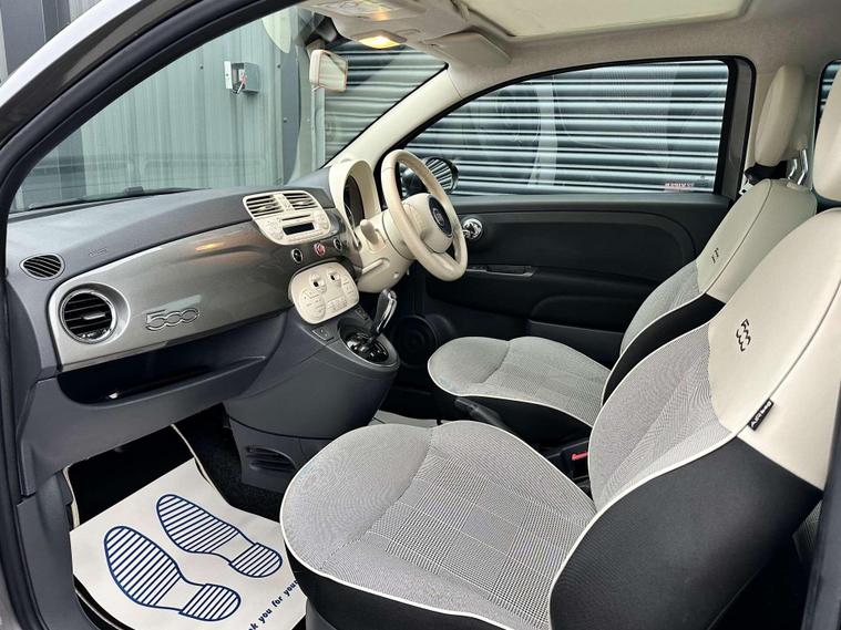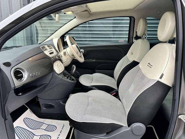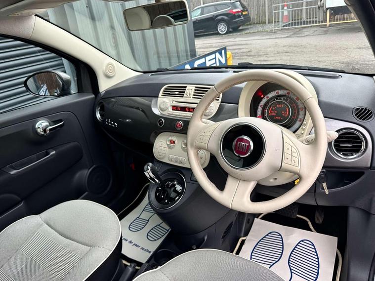 FIAT 500 1.2 Semi-Auto 3dr Euro 6 ULEZ FREE. Finished in Electroclash Grey with two-tone Grey cloth/ Ivory leather and white piping.16'' Alloy wheels, privacy glass, Bluetooth, rear parking sensors, space saver spare wheel, electrically adjustable heated door mirrors, electric front windows, LED DRL's, multifunction leather wrapped steering wheel, climate control.Here at Saracen Motor Group we have been awarded AA Platinum dealership recognition along with being nominated for best customer service by Autotrader for 2021, 2022, 2023, 2024 & 2025. We are a 5-star dealership with over 600 5-star reviews across all internet platforms including Autotrader and have been regarded as one of the best dealerships to buy from in the UK.Our preparation team inspects each vehicle to the highest level possible for its age and mileage. You can rest assured your next car has been cared for to the highest standard. Service history, V5 and the HPI certificate will all be present on viewing and collection. With our location based in Battlesbridge, Essex you can enjoy a haggle-free buying experience where you can drive away the same day if prior arranged, additional fees apply please see our website for details..