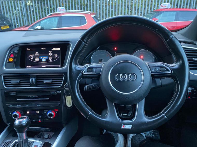 This 2016 Audi SQ5 BiTDI V6 offers an exceptional blend of performance and practicality, boasting a powerful 3.0L Diesel engine and a sophisticated Four Wheel Drive system. As a Euro 6 compliant vehicle, it meets stringent emission standards. This model comes equipped with convenient Rear Parking Sensors, including a Parking Assistance system, and automatic Headlights that activate via a Light Sensor, featuring Xenon illumination. Stay connected on the go with the integrated Mobile Telephone Preparation and Bluetooth Interface, while the Deluxe 3-Zone Climate Control ensures comfort for all occupants.Experience impressive acceleration with a 0-60mph time of just 4.9 seconds, demonstrating its superior performance compared to similar vehicles. This Audi SQ5 also stands out with its low insurance group, making ownership more affordable. Furthermore, you will appreciate the generous boot space, offering ample room for luggage or shopping. With a substantial towing weight of 2400 kg, this SQ5 is ready for a variety of needs..