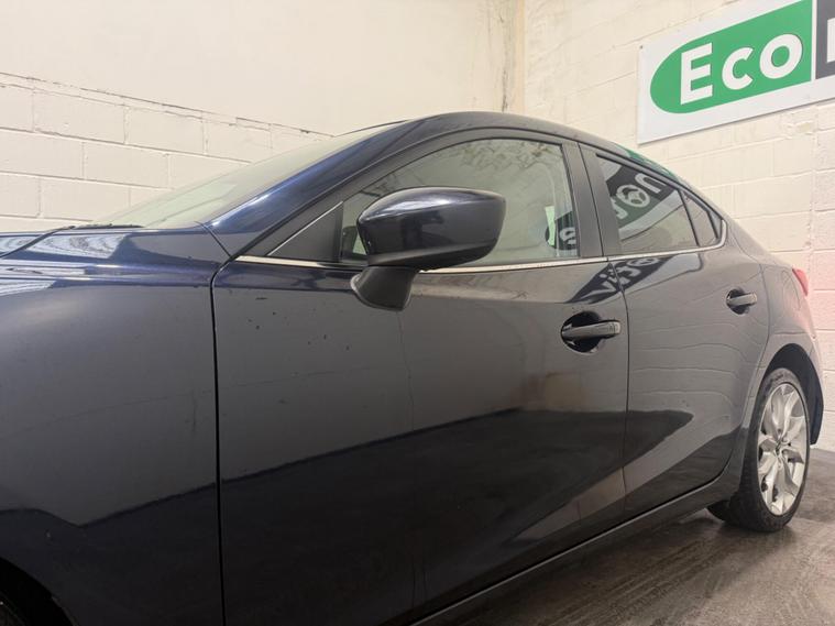 This 2016 Mazda3 SKYACTIV G Sport Nav presents a superb ownership proposition, having been cherished by only two previous owners. As a Sport Nav model, it boasts a responsive 2.0 litre petrol engine and meets Euro 6 emissions standards. Inside, you'll find a premium BOSE Centrepoint Surround System with nine speakers for an immersive audio experience, alongside an integrated Bluetooth system for seamless connectivity. Convenience is enhanced with Smart Keyless Entry and front parking sensors, while dusk sensing automatic headlights ensure optimal visibility in varying light conditions.This Mazda3 stands out with its impressive fuel economy, achieving up to 50 miles per gallon, and its low CO2 emissions, which are better than many comparable vehicles. Furthermore, its low insurance group rating indicates that running costs are kept to a minimum, making it an economical choice for many drivers..