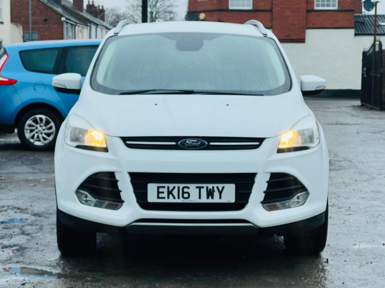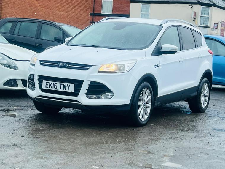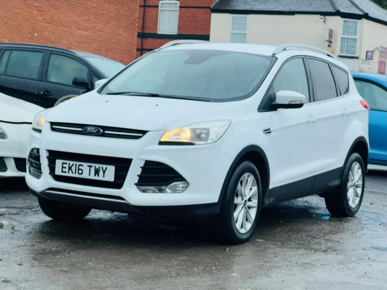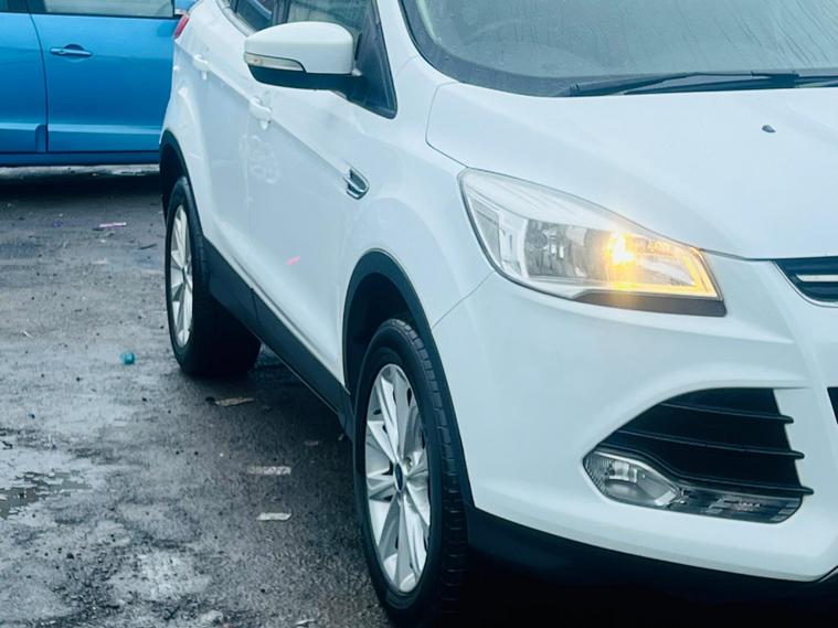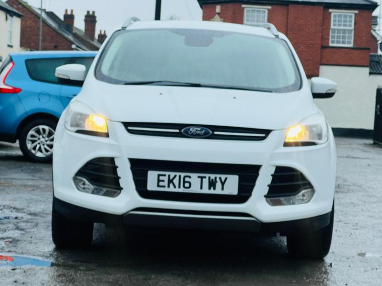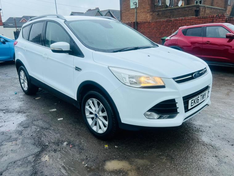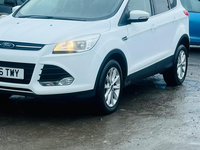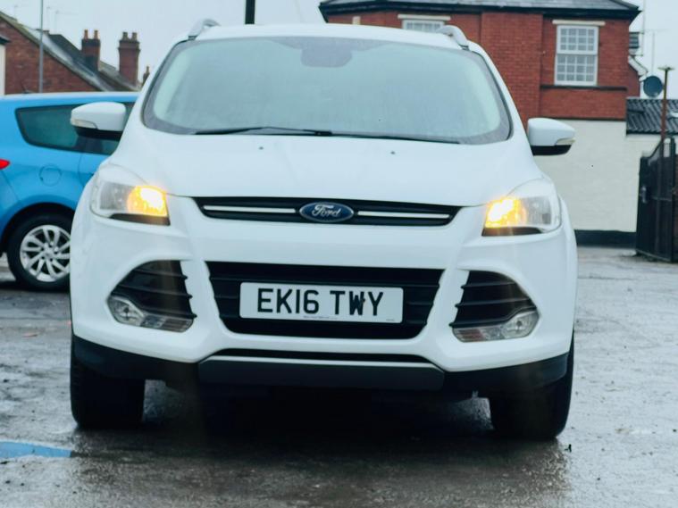 HALF LEATHER PARKING SENSOR BLUETOOTH AIR CON JUST ARRIVED PART EXCHANGE AND DELIVER AVAILABLE LOW RATE FINANCE AVAILABLE 0 DEPOSIT FINANCE AVAILABLE This 2016 Ford Kuga TDCi Titanium offers an exceptional blend of efficiency and technology. Powered by a robust 2.0L Diesel engine, this Euro 6 compliant model is designed for modern driving. The Titanium trim level ensures a premium experience, featuring Dual Zone Electronic Automatic Temperature Control for personalised comfort, and Bluetooth handsfree phone connectivity for seamless communication on the go. Automatic headlights provide added convenience and safety, adapting to changing light conditions without driver input.With an impressive fuel economy of 60 mpg, this Ford Kuga stands out for its cost effectiveness, indicating it is more economical than many similar vehicles. Its low CO2 emissions further contribute to its appeal, making it a sensible choice for environmentally conscious drivers. This combination of efficient performance, advanced features, and strong fuel economy makes the Kuga TDCi Titanium a compelling option..