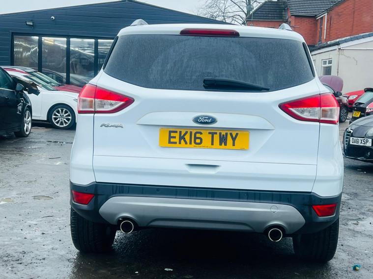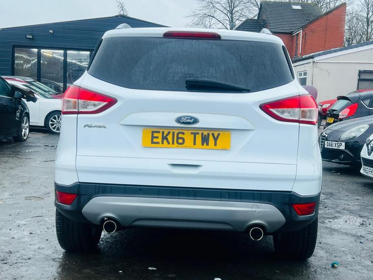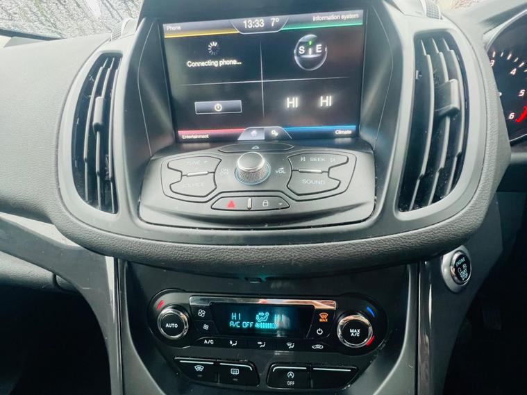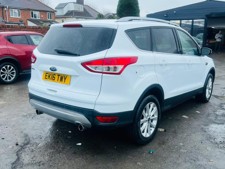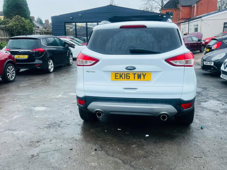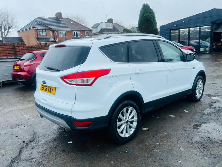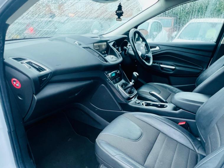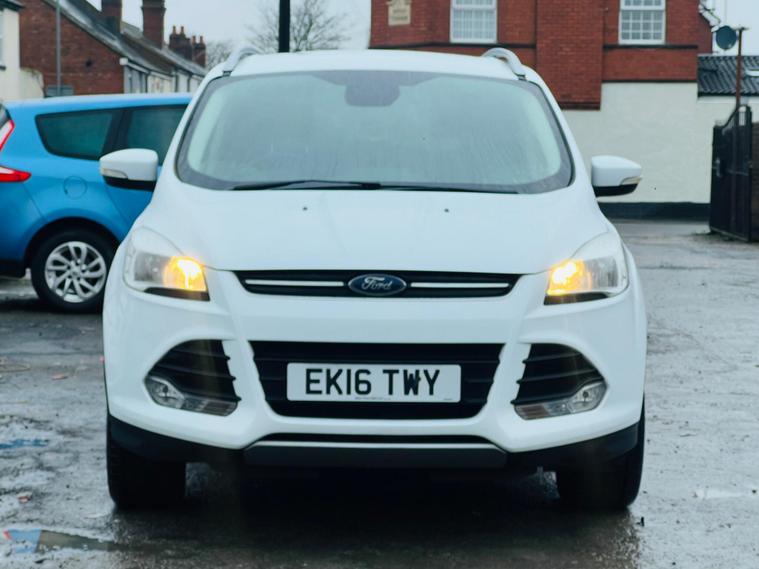 HALF LEATHER PARKING SENSOR BLUETOOTH AIR CON JUST ARRIVED PART EXCHANGE AND DELIVER AVAILABLE LOW RATE FINANCE AVAILABLE 0 DEPOSIT FINANCE AVAILABLE This 2016 Ford Kuga TDCi Titanium offers an exceptional blend of efficiency and technology. Powered by a robust 2.0L Diesel engine, this Euro 6 compliant model is designed for modern driving. The Titanium trim level ensures a premium experience, featuring Dual Zone Electronic Automatic Temperature Control for personalised comfort, and Bluetooth handsfree phone connectivity for seamless communication on the go. Automatic headlights provide added convenience and safety, adapting to changing light conditions without driver input.With an impressive fuel economy of 60 mpg, this Ford Kuga stands out for its cost effectiveness, indicating it is more economical than many similar vehicles. Its low CO2 emissions further contribute to its appeal, making it a sensible choice for environmentally conscious drivers. This combination of efficient performance, advanced features, and strong fuel economy makes the Kuga TDCi Titanium a compelling option..